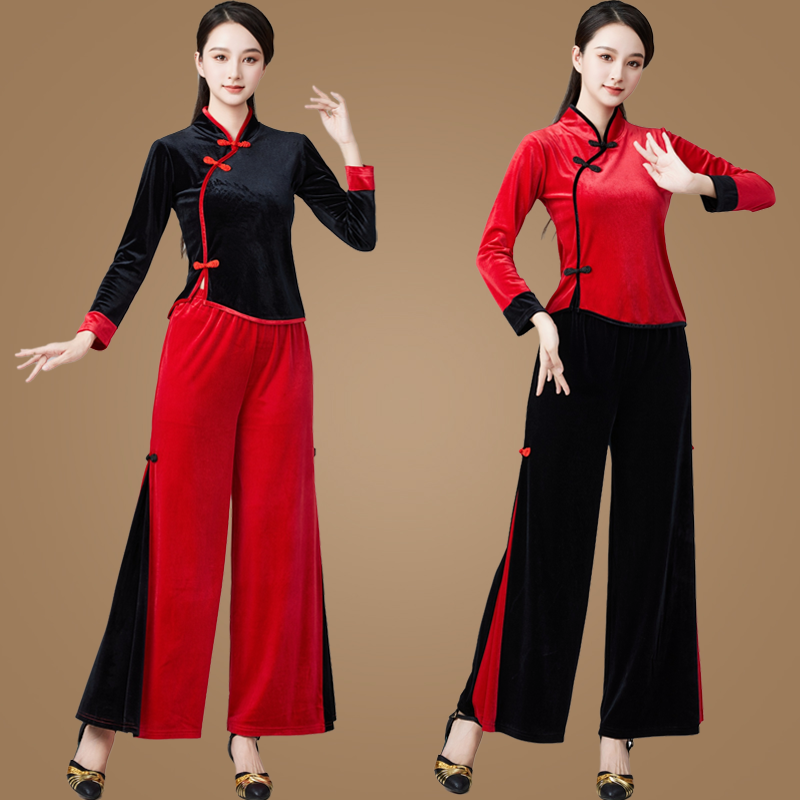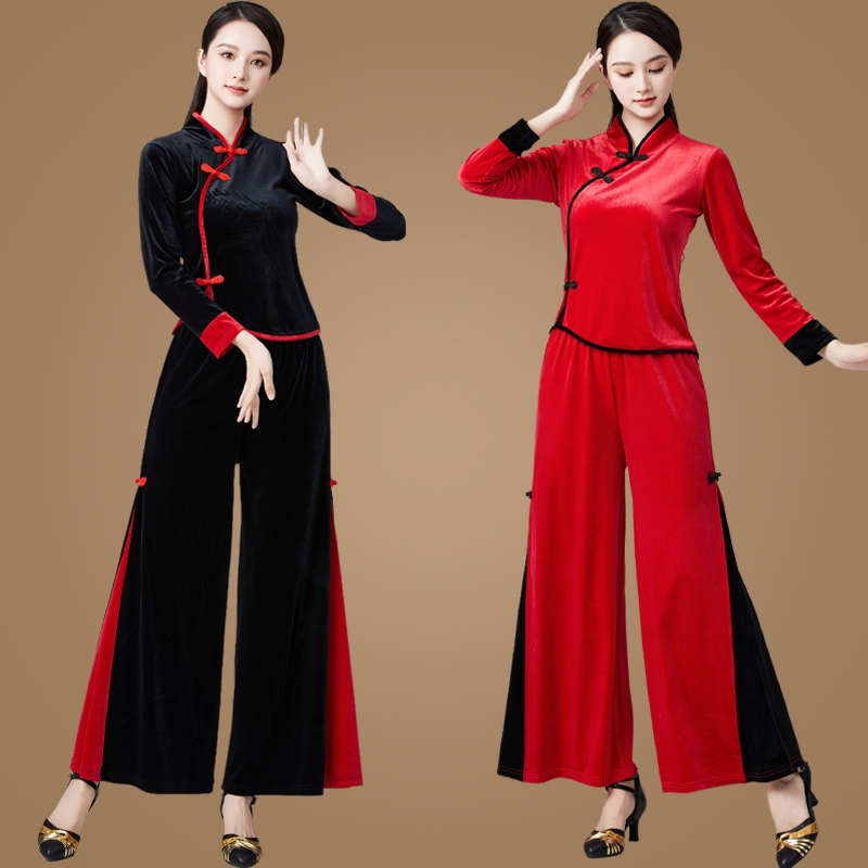 秋冬新款古典舞舞蹈演出服广场舞服装金丝绒套装裤民族风跳舞衣女