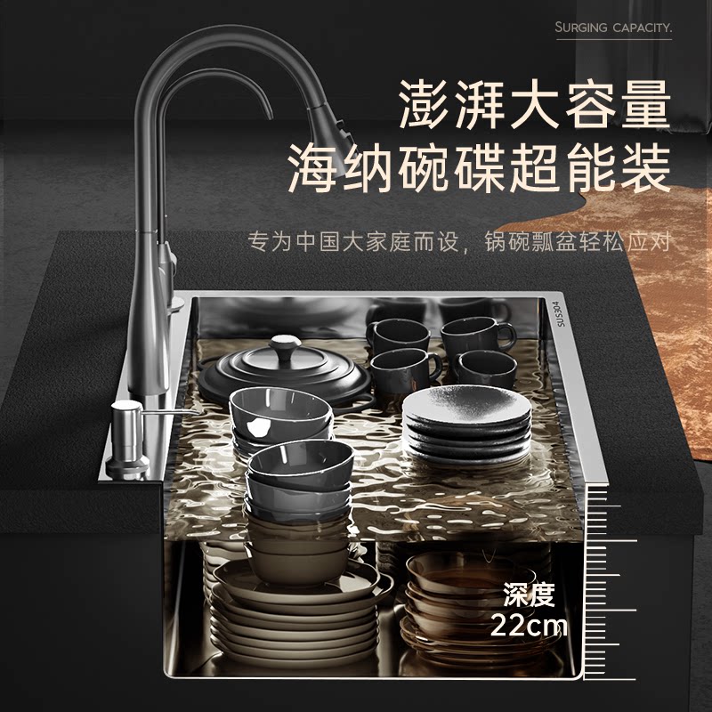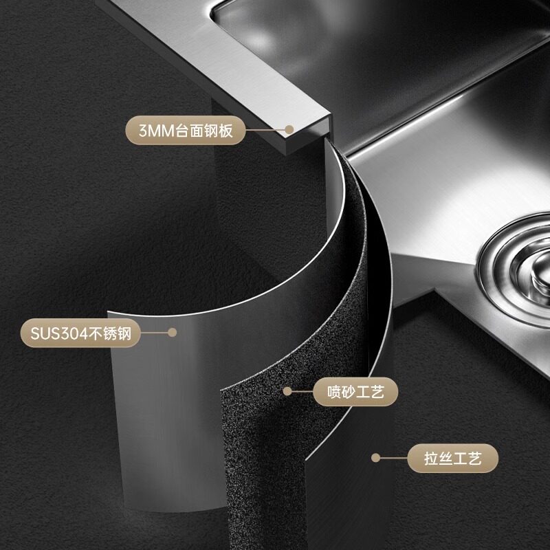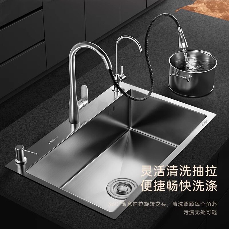 万和水槽0涂层加厚304不锈钢家用厨房洗菜盆双槽改大单槽洗碗池