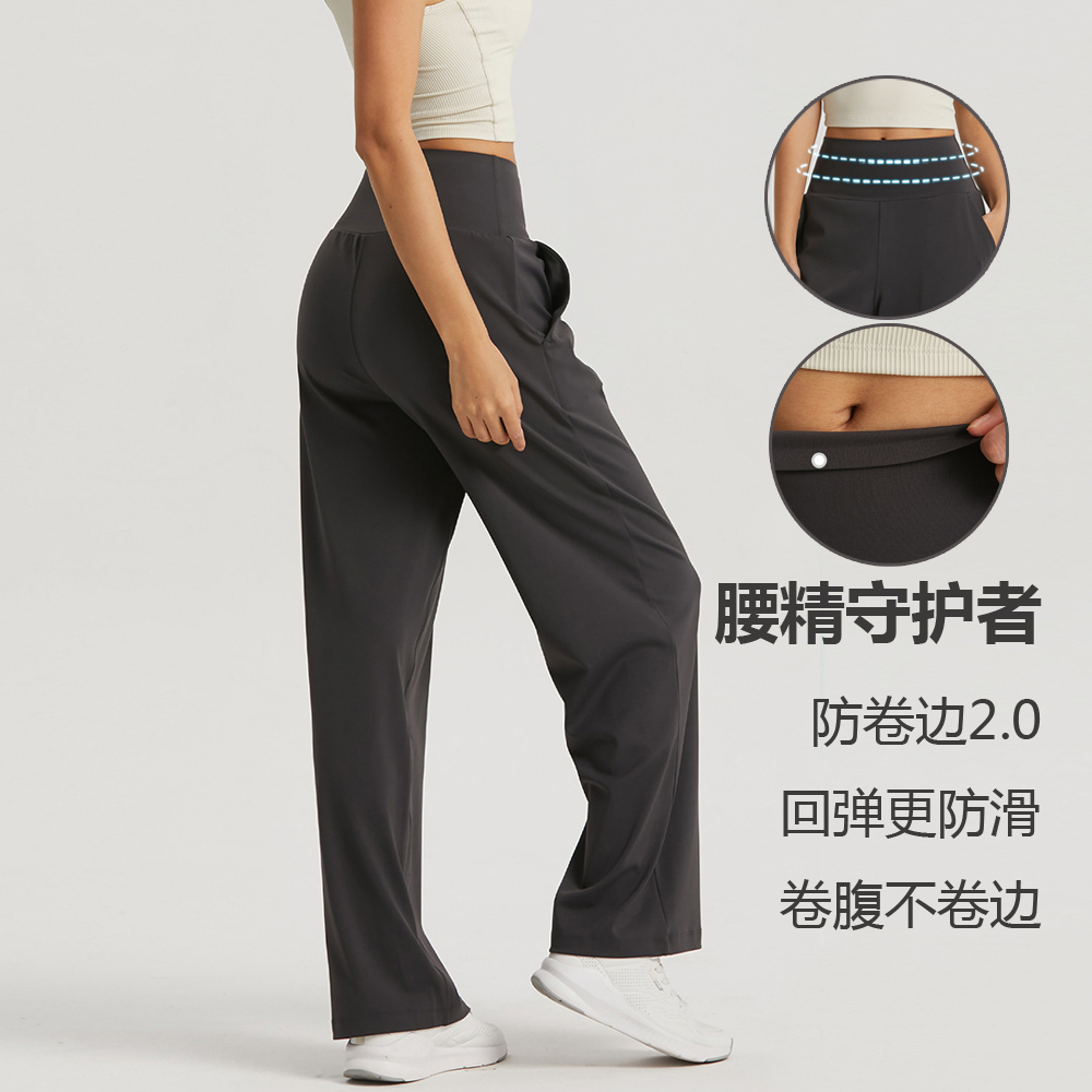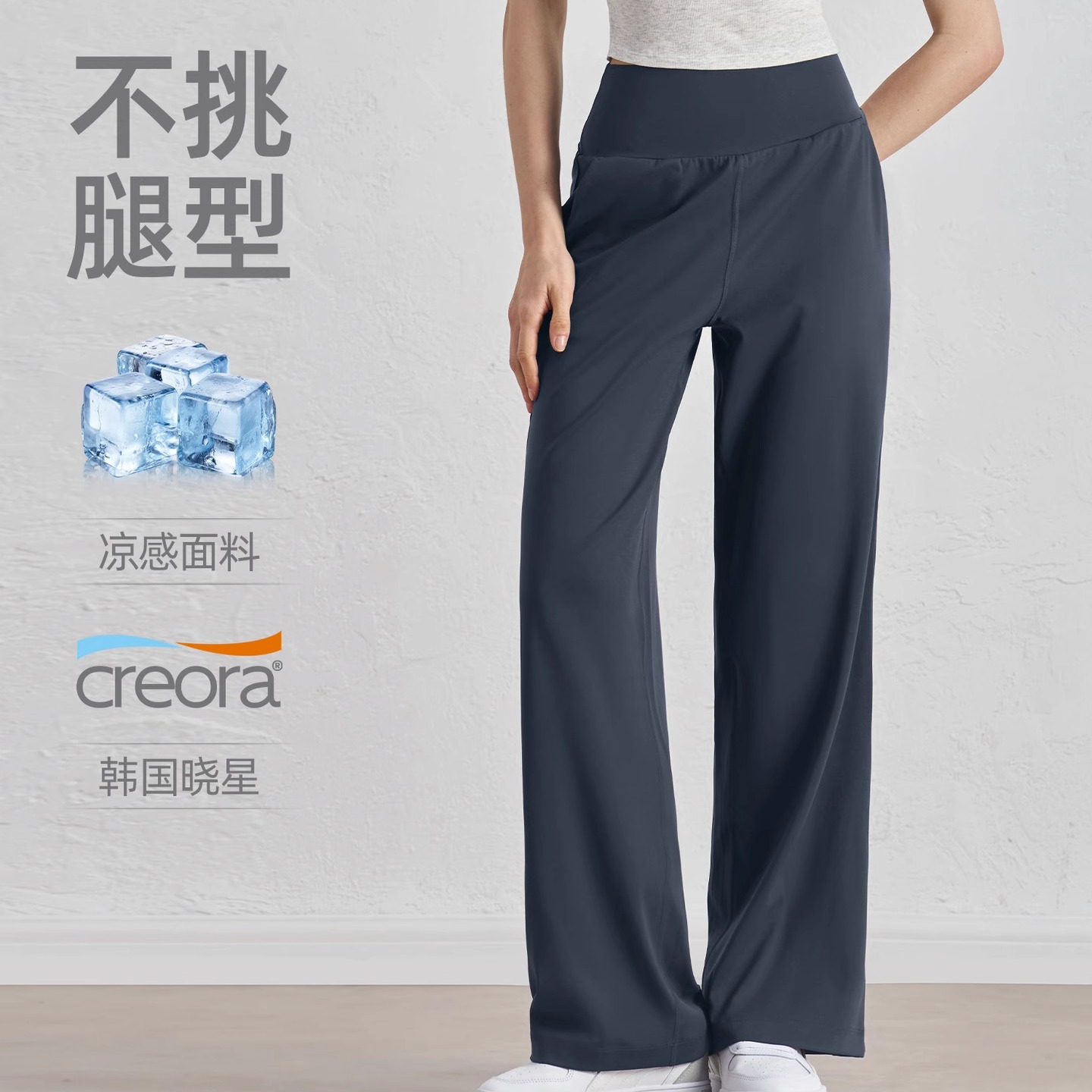 女夏高腰显瘦阔腿裤宽松速干瑜伽裤舞蹈裤直筒裤健身跑步运动长裤