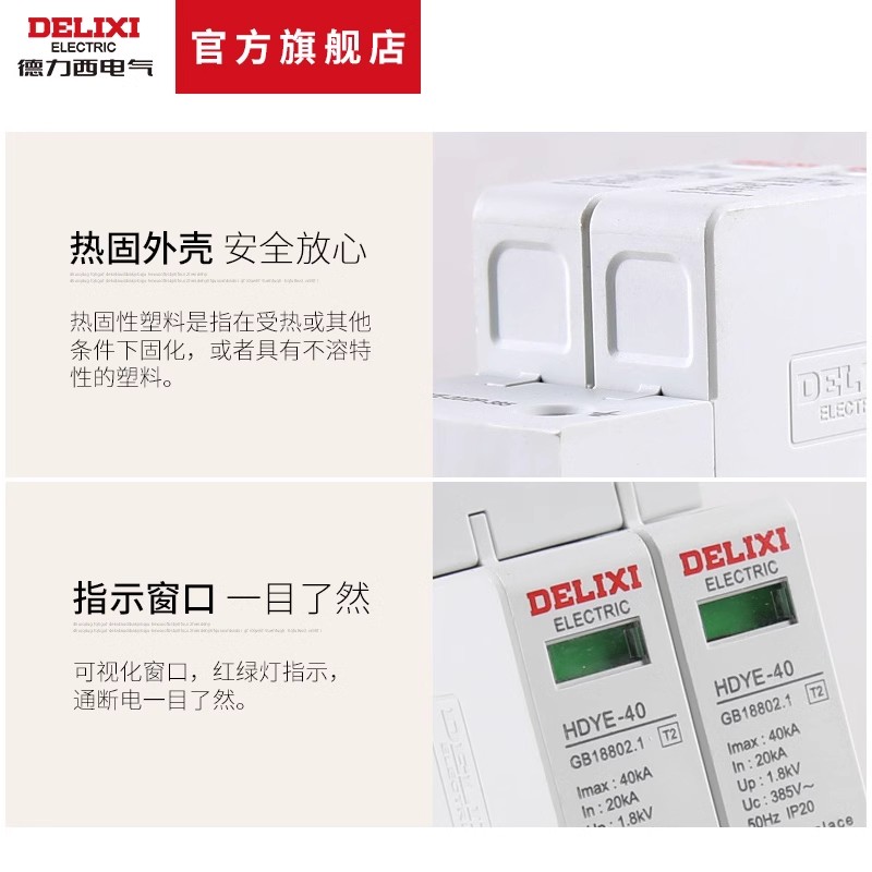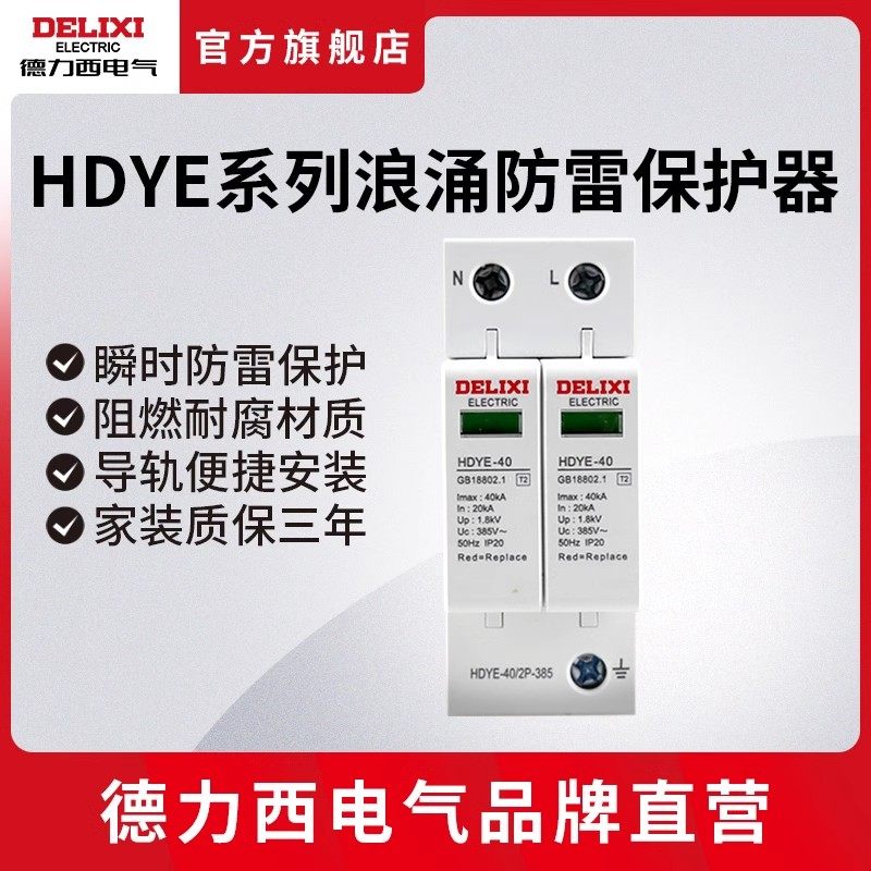 德力西电气浪涌保护器2p25ka家用防雷保护器40ka电涌保护器220V