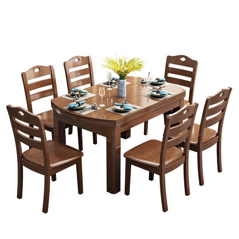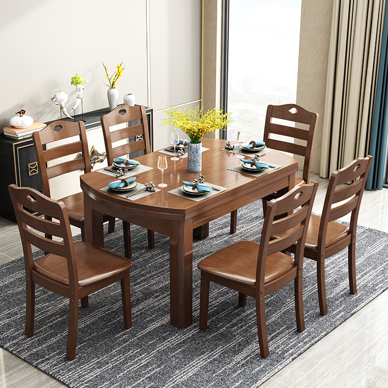 新中式实木餐桌现在简约小户型家用可伸J缩折叠圆桌饭桌圆形餐桌