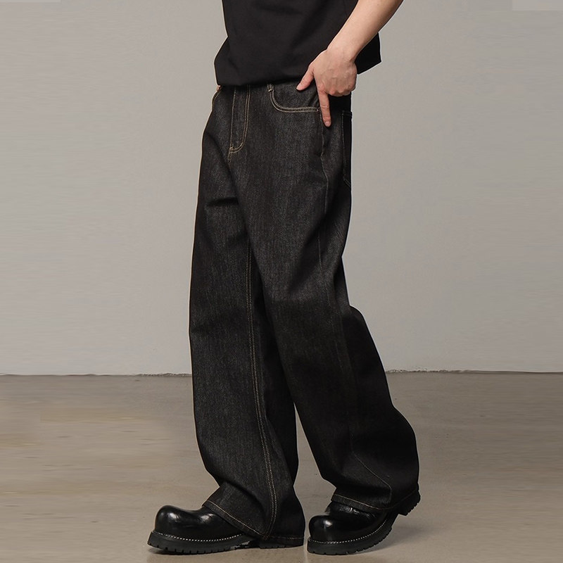 190高个子加长美式复古原牛赤耳丹宁牛仔裤男生宽松直筒高街长裤