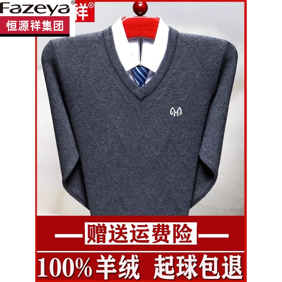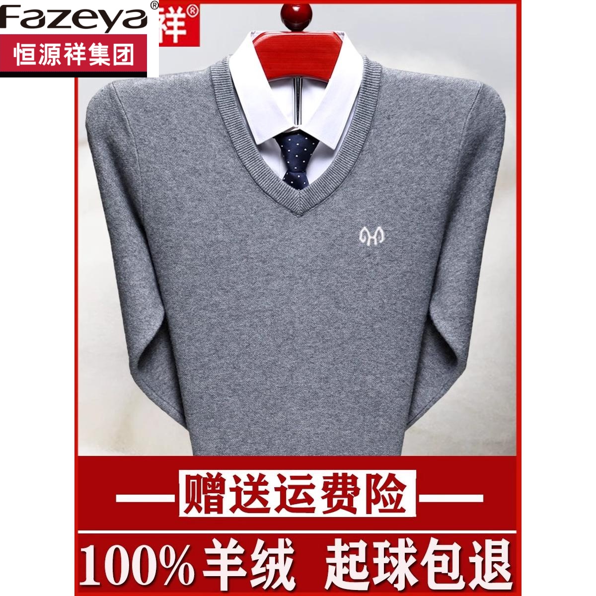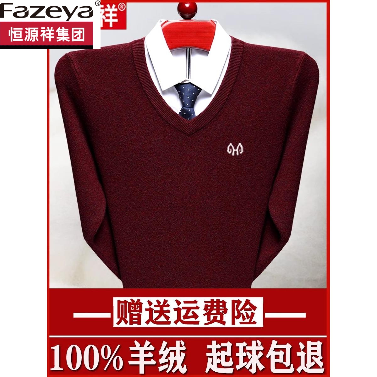 恒源祥集团彩羊纯山羊绒衫男士鸡心领加厚保暖毛衣中年V领羊毛衫