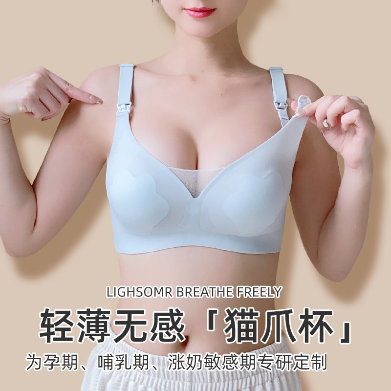 草本初色哺乳内衣夏薄款防下垂聚拢无痕产后喂奶孕妇文胸孕期专用