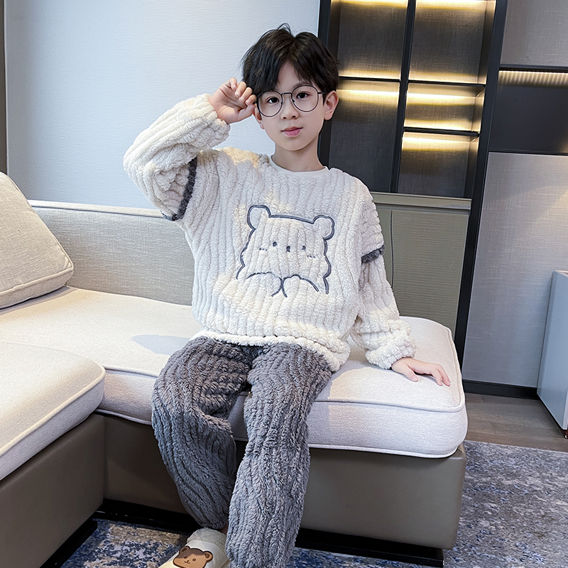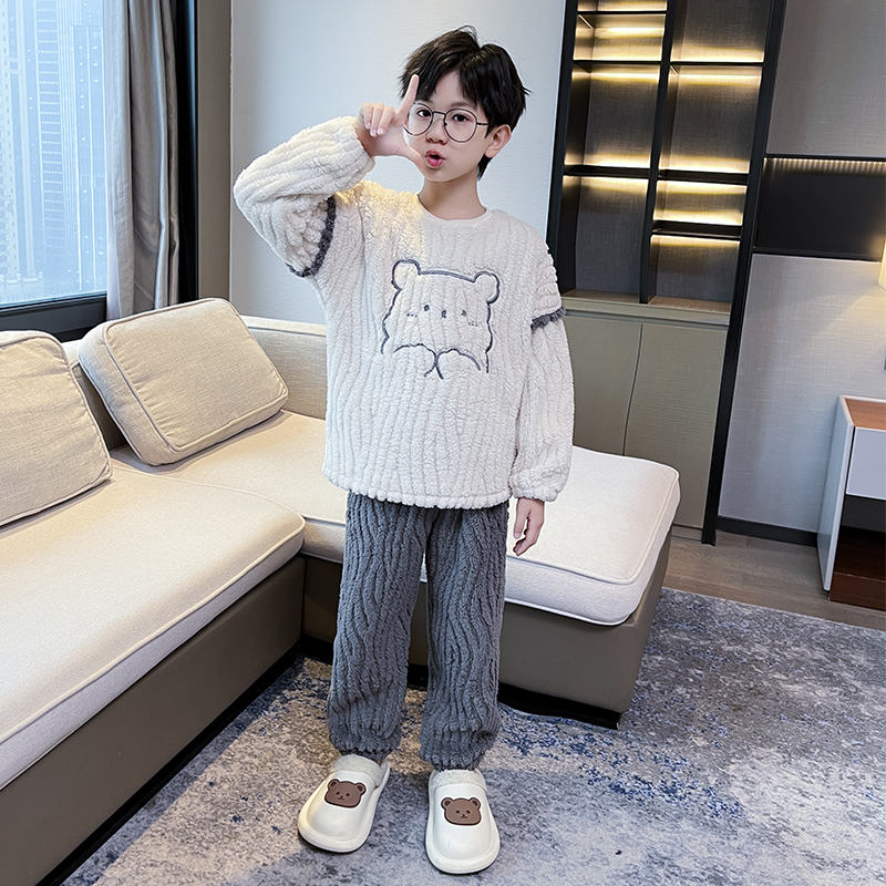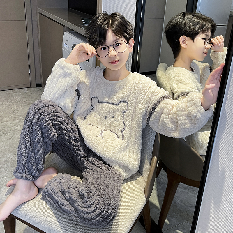 儿童装男童睡衣秋冬款珊瑚绒法兰绒中大童加绒加厚男孩冬季家居服