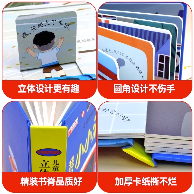 儿童职业体验益智立体玩具书我是小小消防员 3d立体机关书推拉绘本故事书宝宝启蒙3-4-5-6岁读物幼儿0到2岁三书本早教车套装可以玩