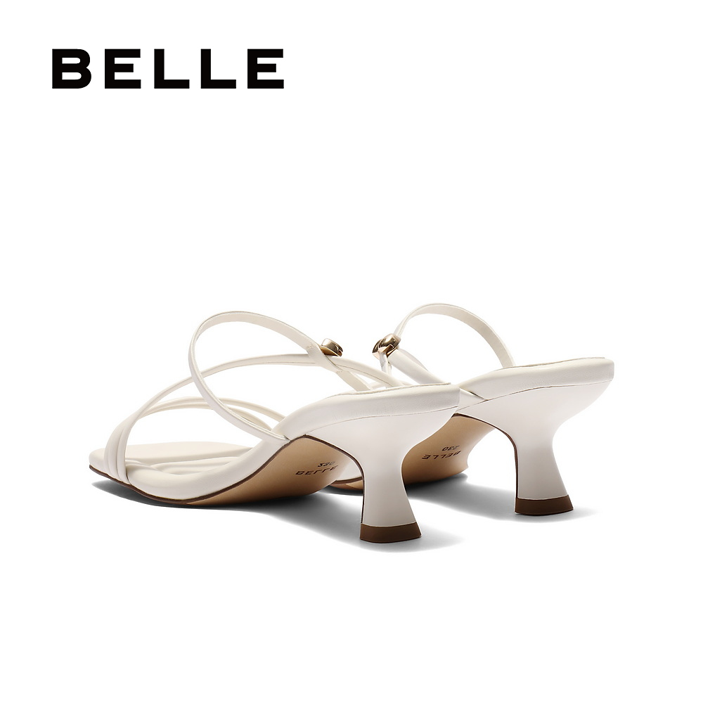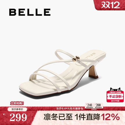 百丽一字带凉拖鞋女2025夏季新款法式高跟可外穿拖鞋子BBLB2BT5