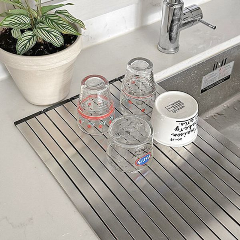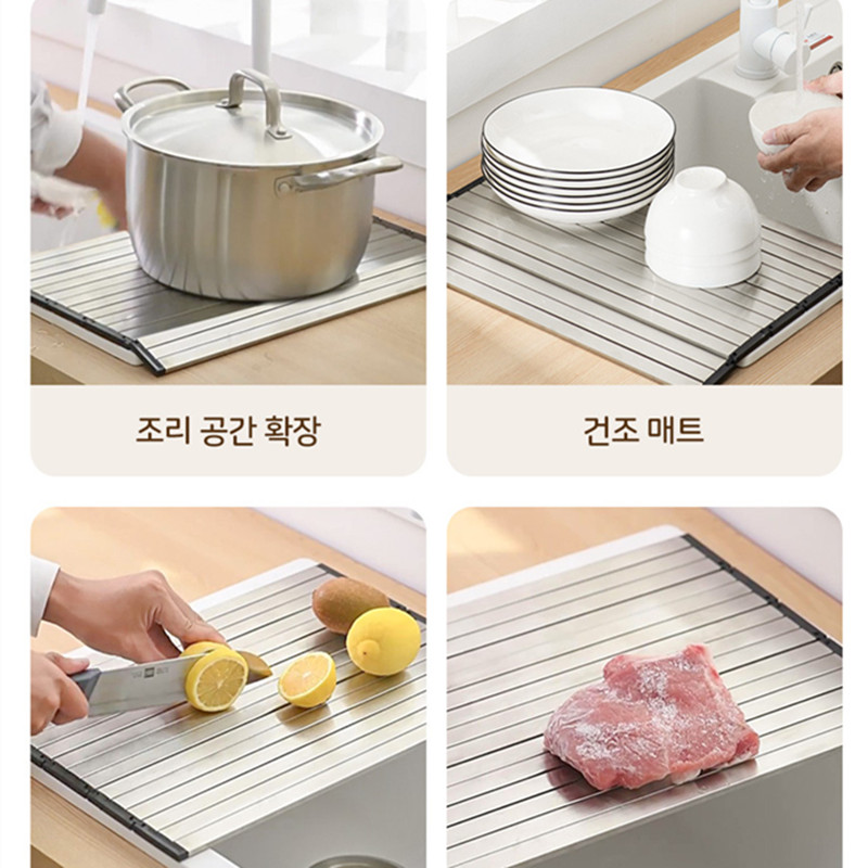 韩国304不锈钢沥水架厨房水槽上置物架洗碗架碗碟多用折叠切菜板