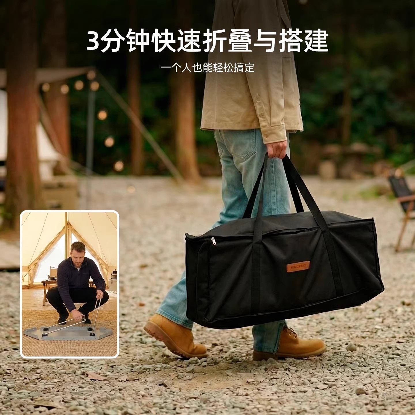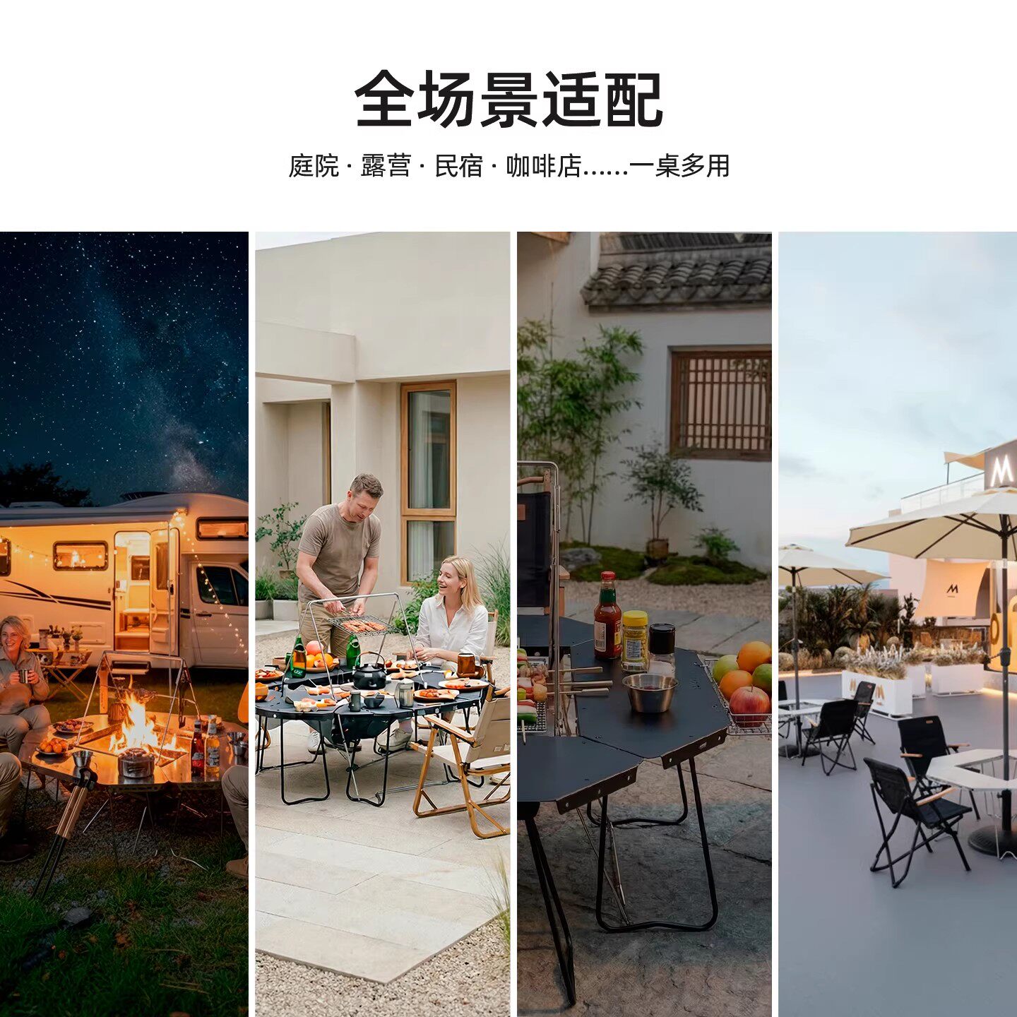 皓风户外露营折叠桌围炉煮茶烧烤桌多功能拼接篝火围桌便携装备