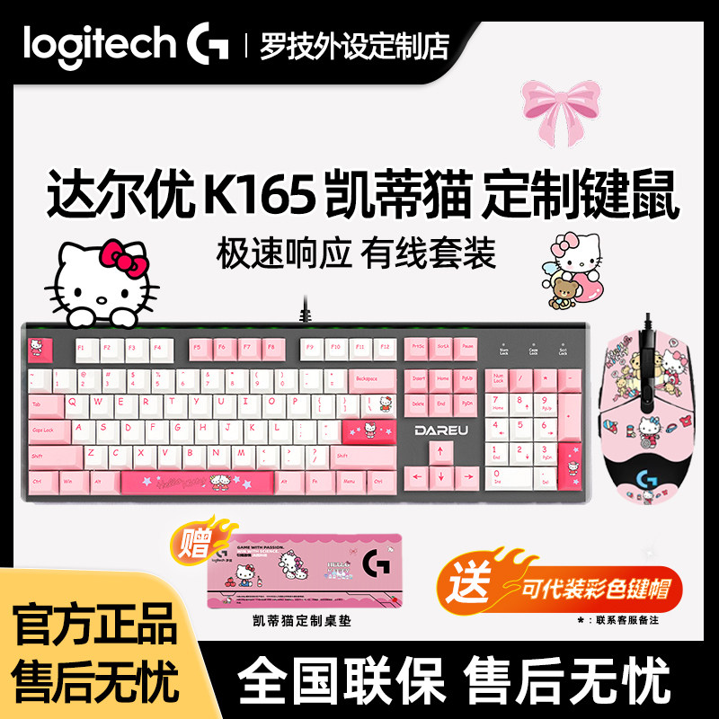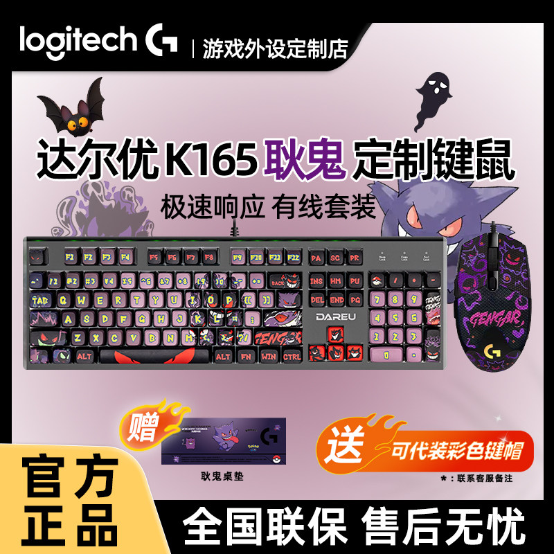 达尔优LK165有线机械键盘PBT罗技G102鼠标高达马里奥耿鬼键鼠套装