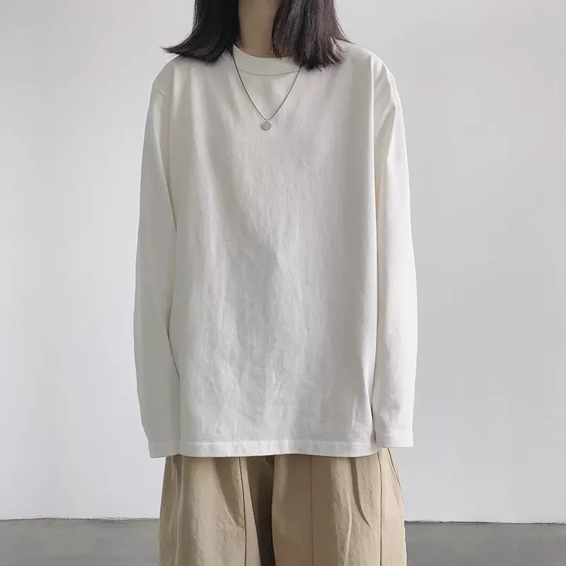 白色纯棉打底衫女春秋冬内搭韩版宽松百搭大码中长款T恤叠穿上衣