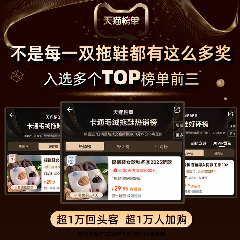 棉拖鞋女款秋冬季2026新款洋气时尚室内家居情侣可爱毛绒拖鞋男款