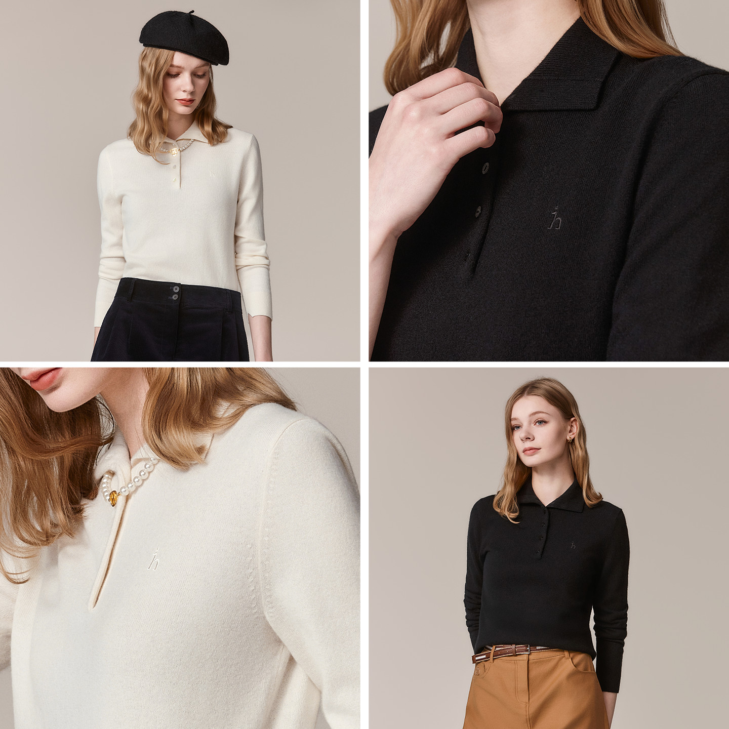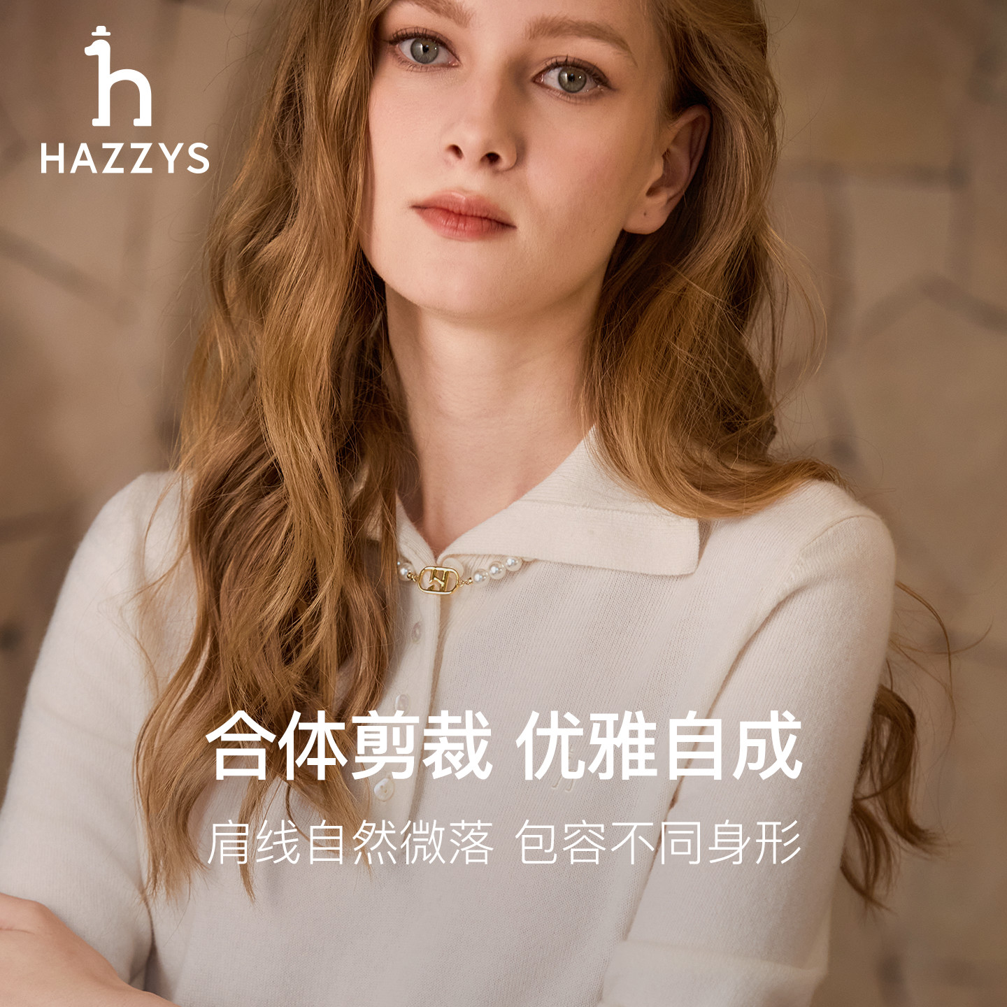 Hazzys哈吉斯针织衫女秋季休闲纯色上衣时尚高领内搭套头羊毛衫