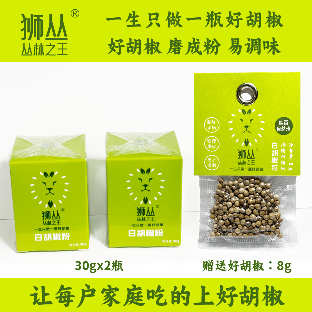 狮丛 丛林之王白胡椒粉30g纯正胡椒粉牛排炒菜西餐汤料家用调味料