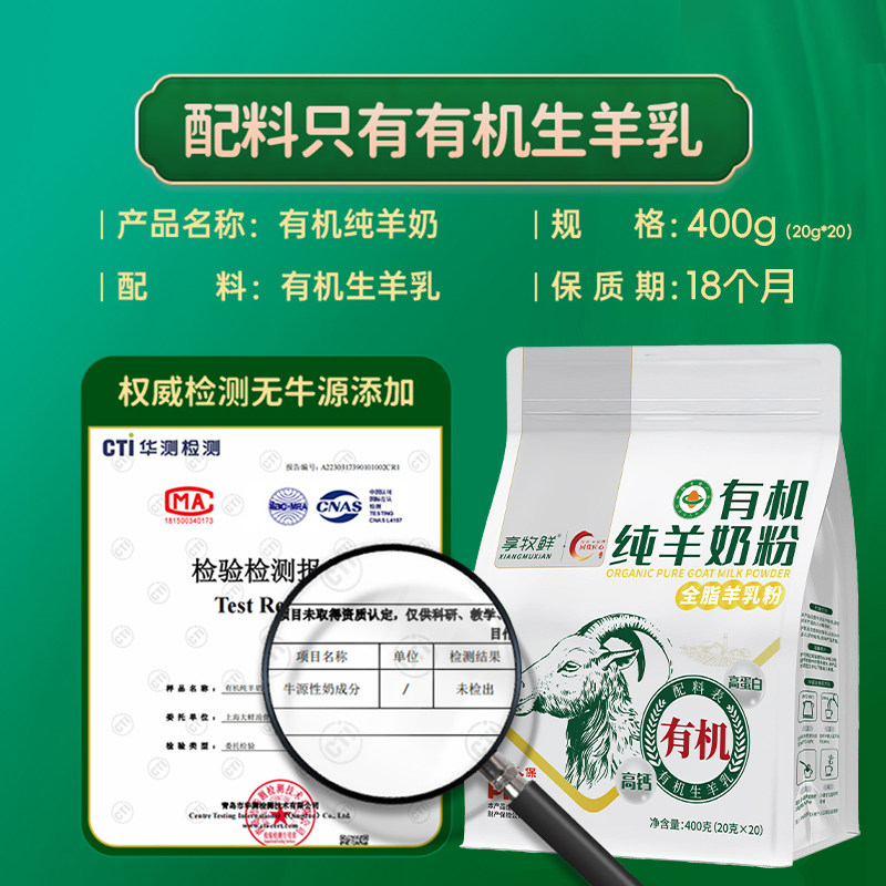 享牧鲜有机纯羊奶粉独立条装高钙高蛋白无蔗糖学生成人中老年人
