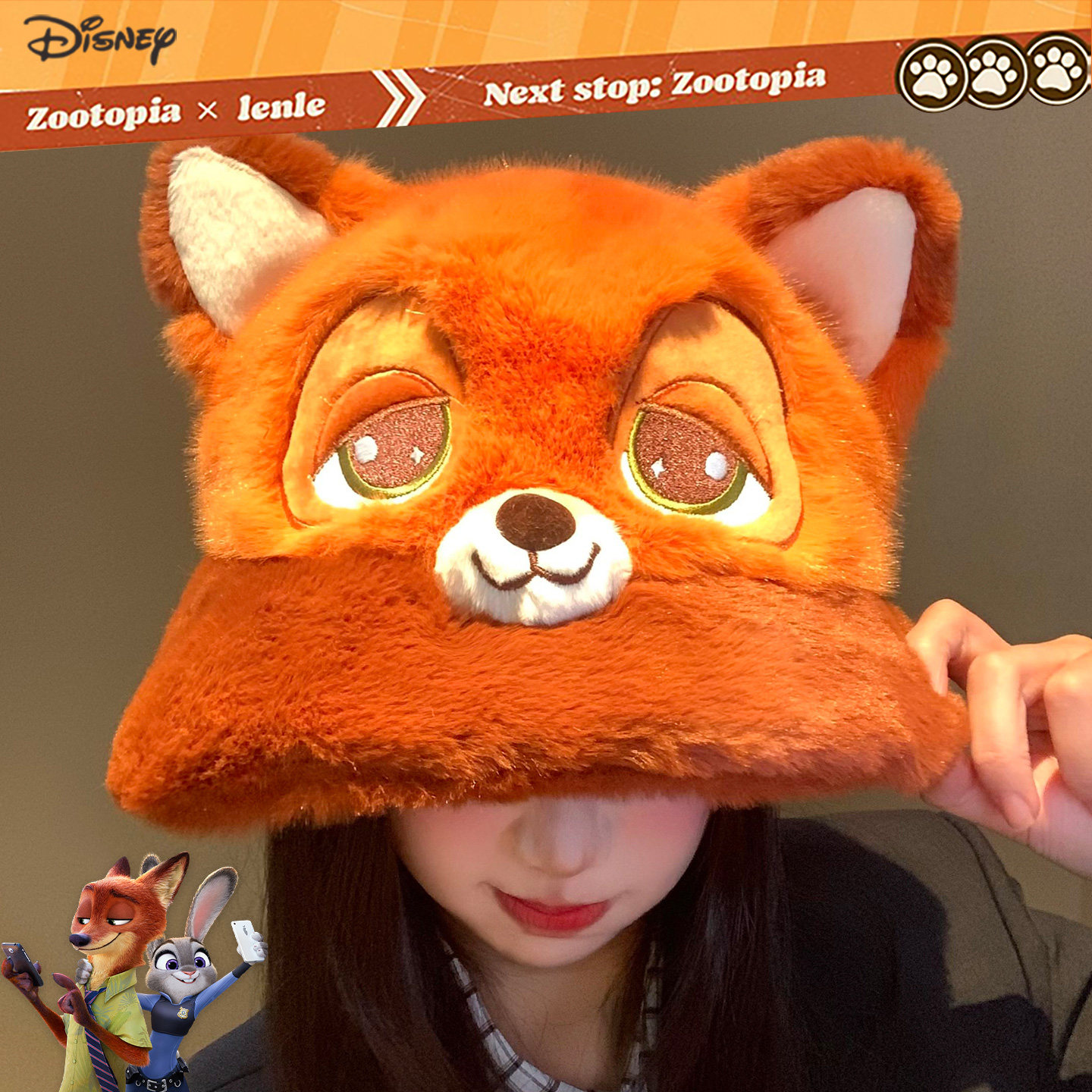 迪士尼疯狂动物城尼克毛绒渔夫帽女冬季可爱盆帽加绒保暖防寒帽子