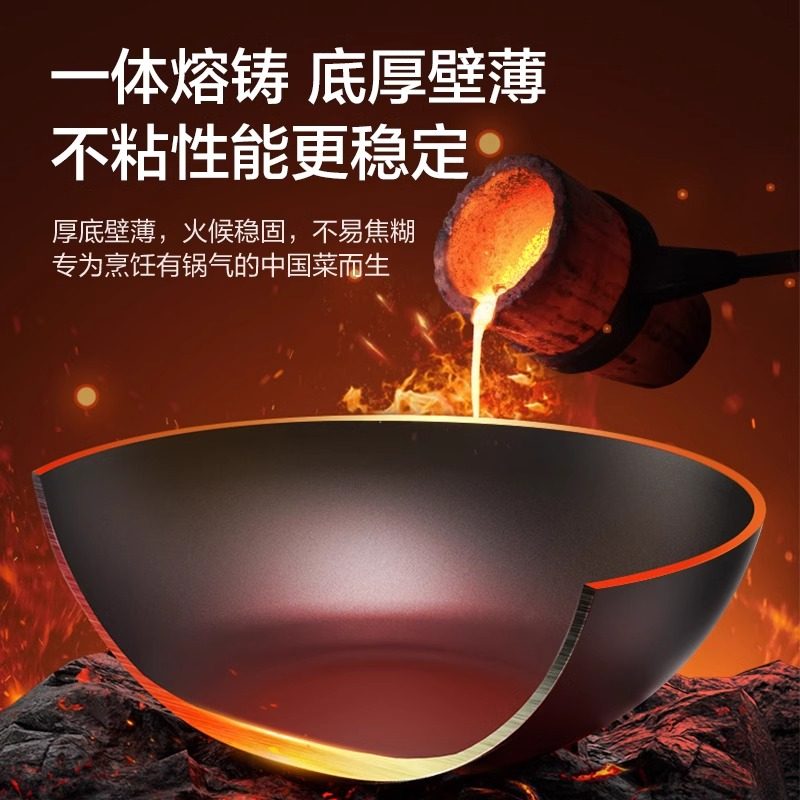 苏泊尔铁锅有钛无涂层铸铁不粘锅官方旗舰店正品厨师专用炒锅家用