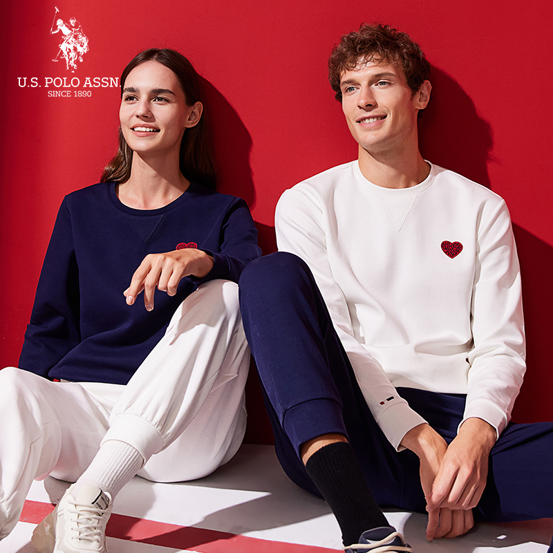 USPA春季纯色圆领卫衣男女基础款ins青年宽松运动女长袖T恤打底衫