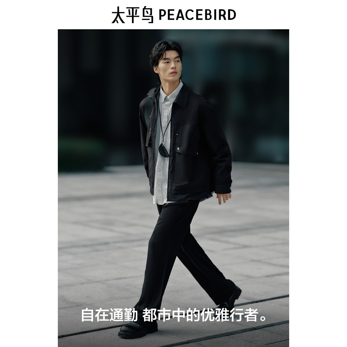 太平鸟男装商务行政夹克秋新款拼接巴恩风cleanfit休闲茄克外套