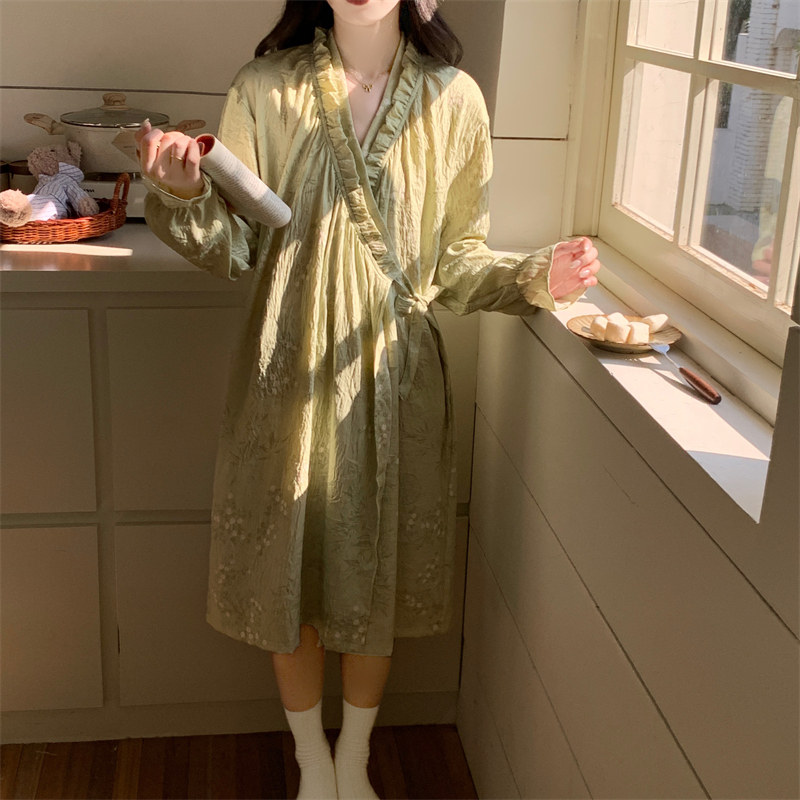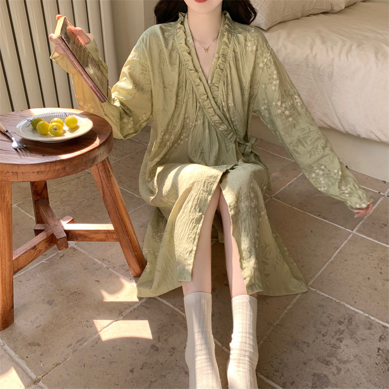 女士睡裙春秋季长袖绑带公主风浴袍睡袍睡衣加大码2026新款家居服