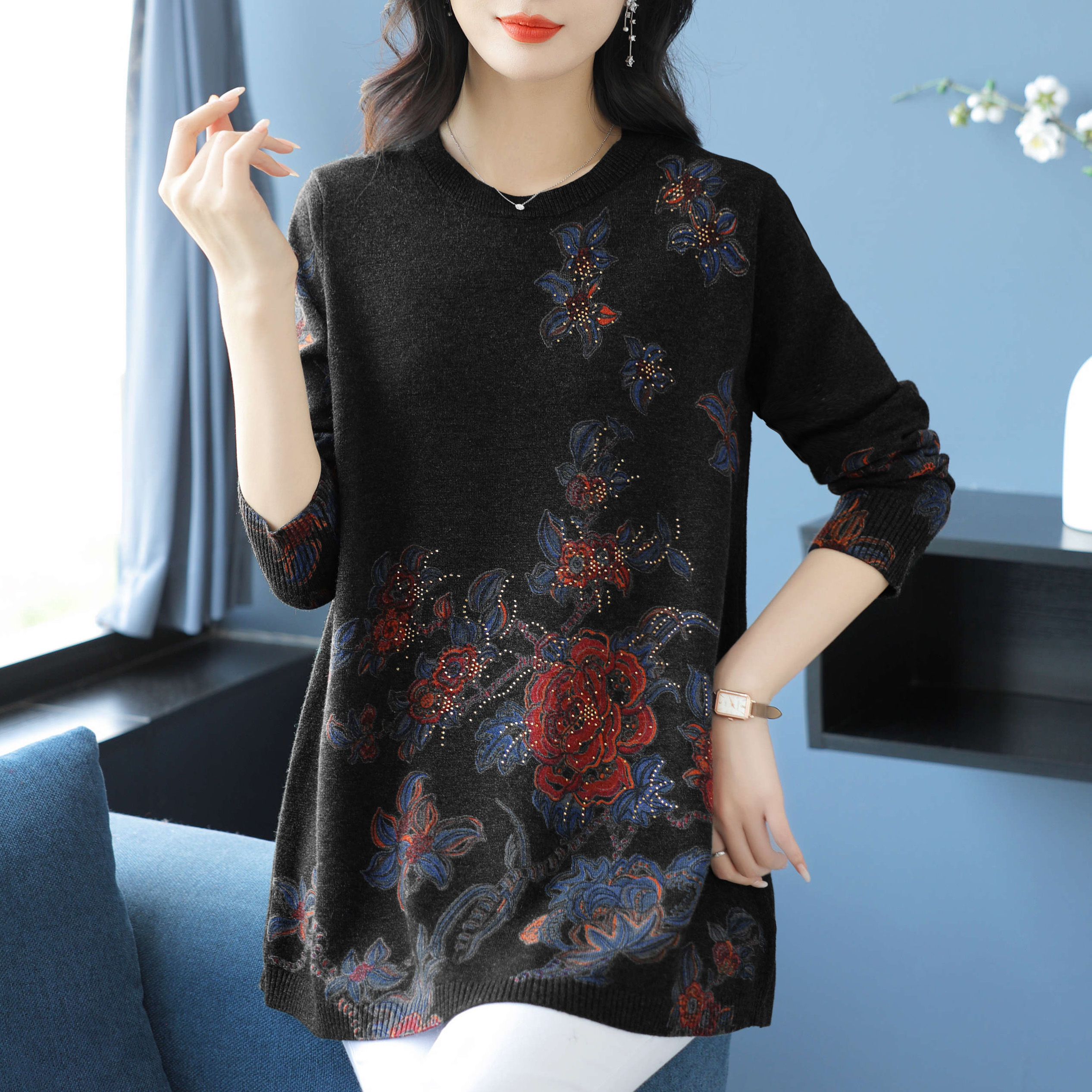 中老年妈妈秋冬中长款打底毛衣加肥大码女装200斤宽松遮肚羊绒衫