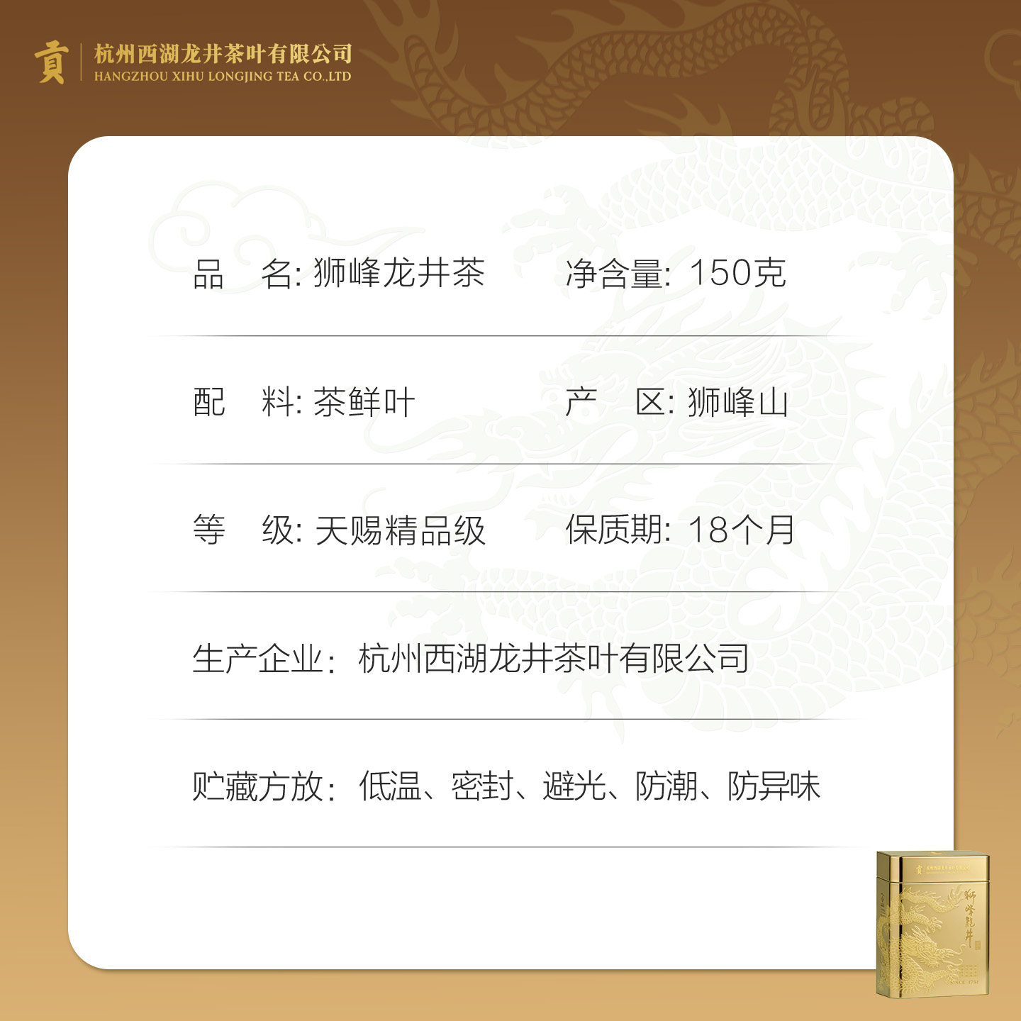 【2026新茶预售】贡牌正宗明前天赐精品西湖狮峰龙井茶叶150g绿茶
