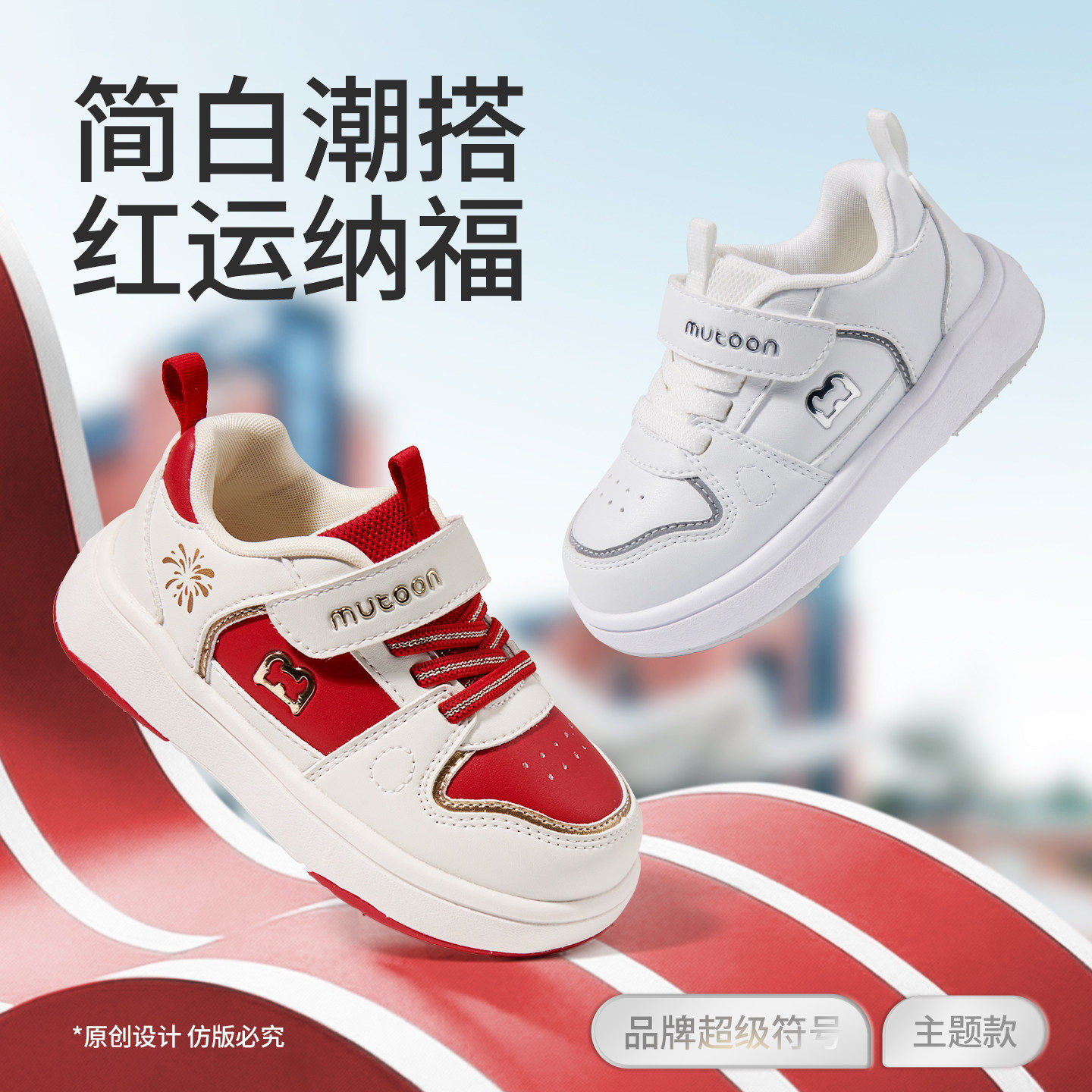 【新年鸿运】牧童儿童运动鞋白色2026春季新款红色轻便男童鞋女童