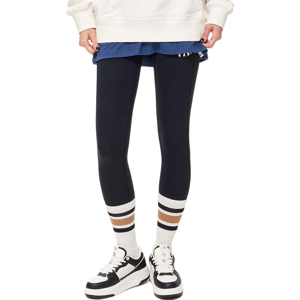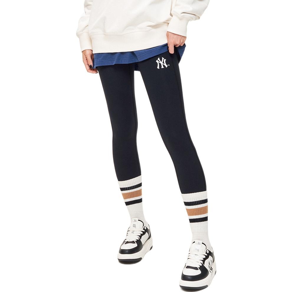 MLB 纽约洋基队 纯色Logo标识运动紧身健身裤 女款 黑色