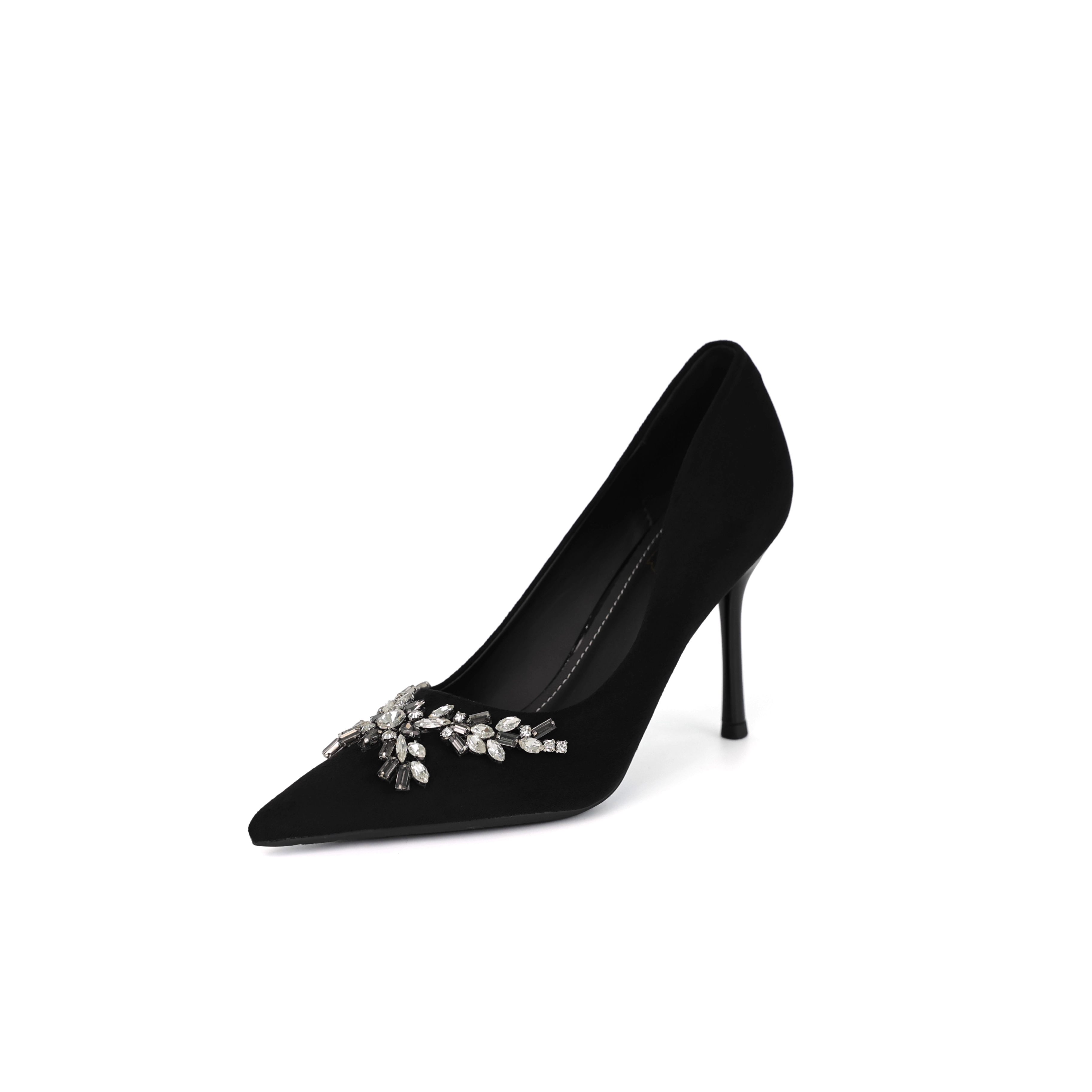 小码313233黑色高级感高跟鞋女尖头绝美水钻细跟职业单鞋大码4143