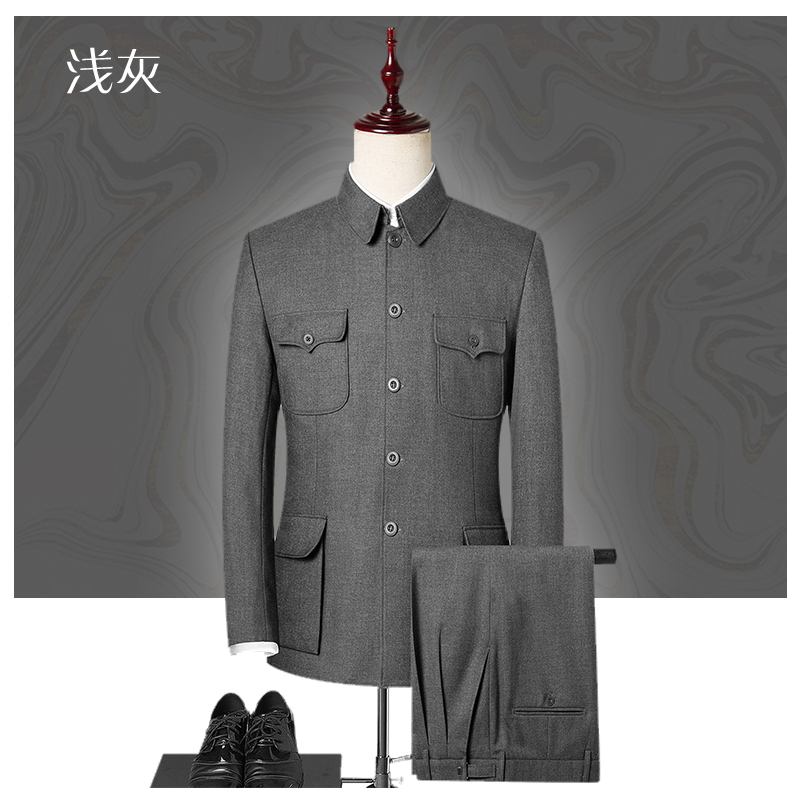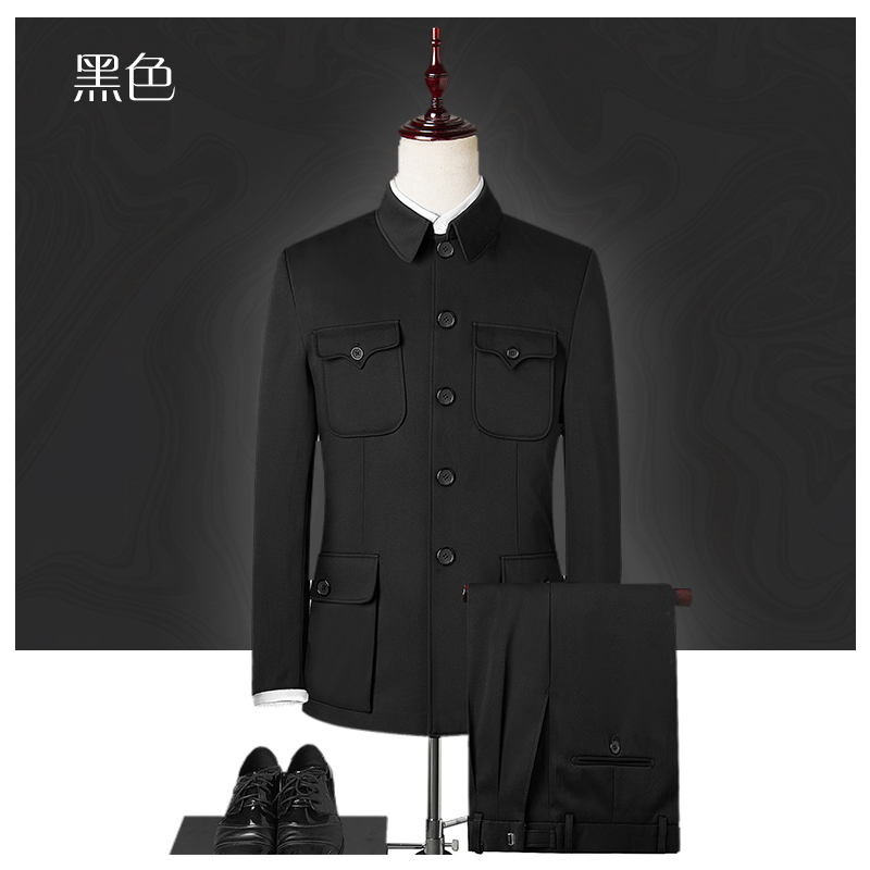 中老年中山装套装男老式老人中山服套装人民服军便装加绒加厚加棉