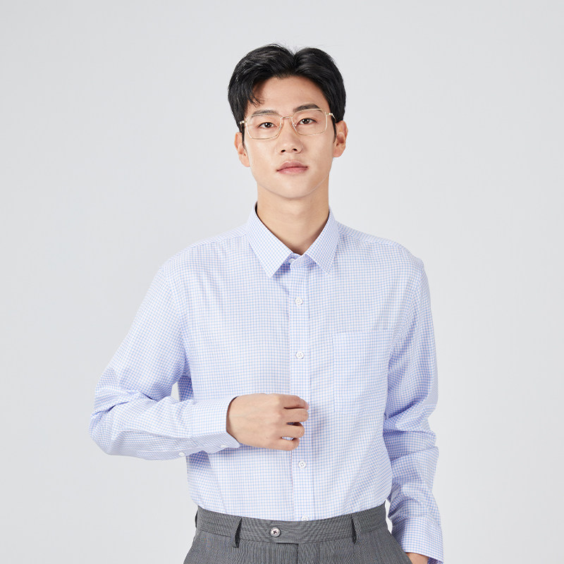 【免烫】乔治白春秋男士长袖衬衫尖领直筒纯棉易打理上衣有口袋