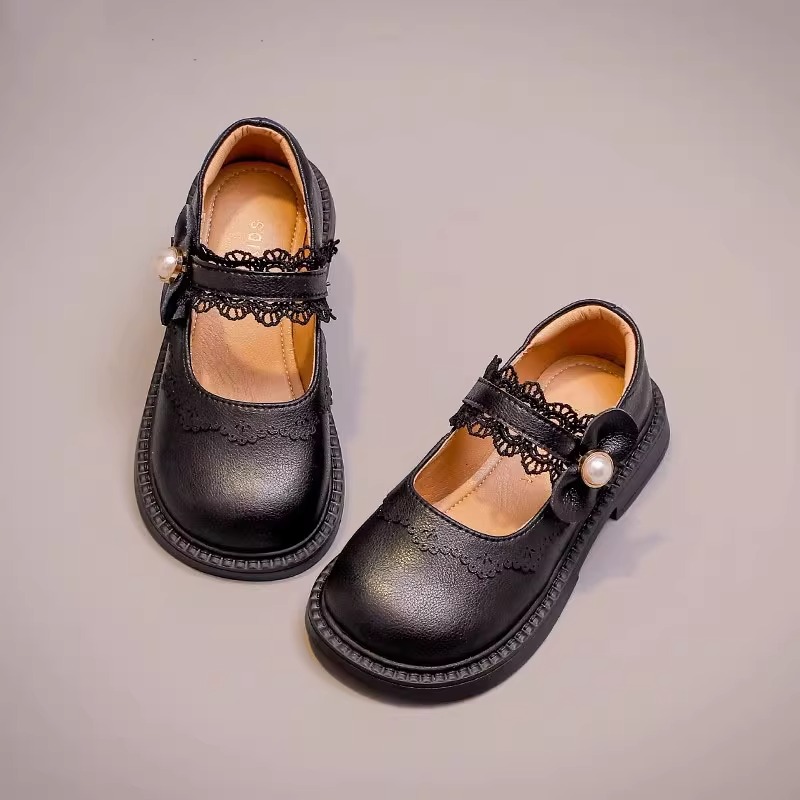 真皮女童鞋子儿童公主小皮鞋2025新款春秋女宝宝简约黑色演出单鞋
