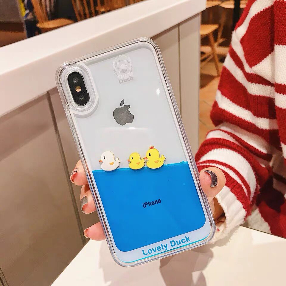 网红13小黄鸭11液体12流动鸭子适用苹果15promax手机壳x水流体iPhone16流沙14小鸭子透明xsmax硅胶防摔保护套