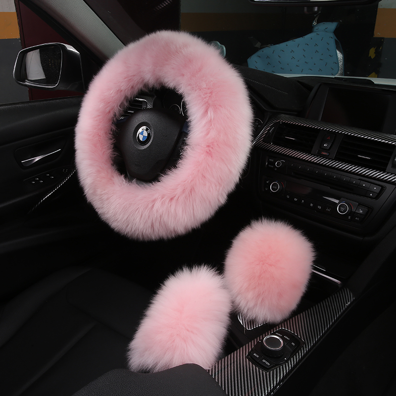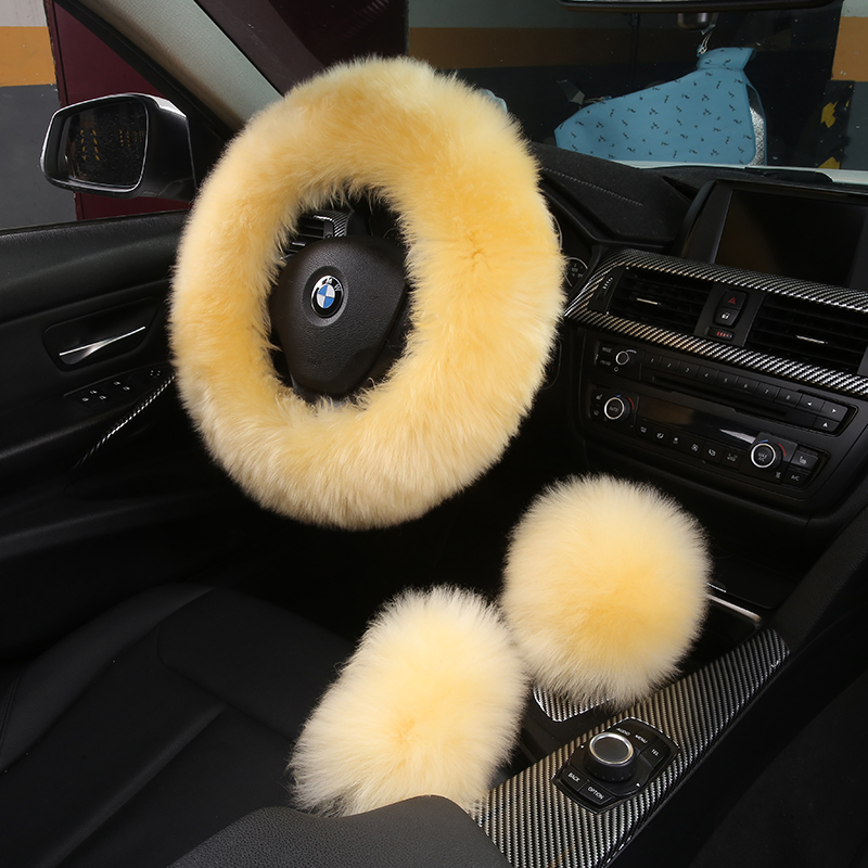 汽车方向盘套冬季羊毛把套毛绒档位手刹套可爱女羊毛真皮毛一体