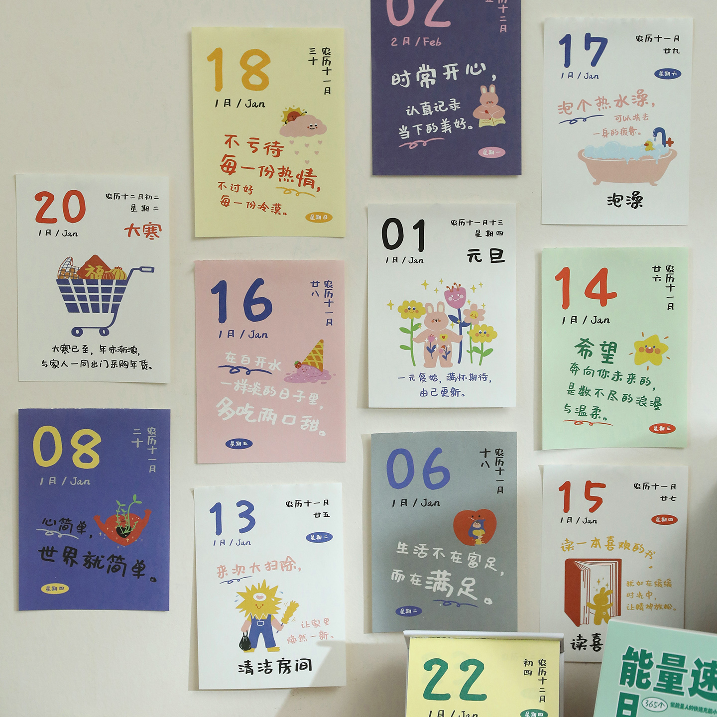 2026正能量彩色治愈插画日历