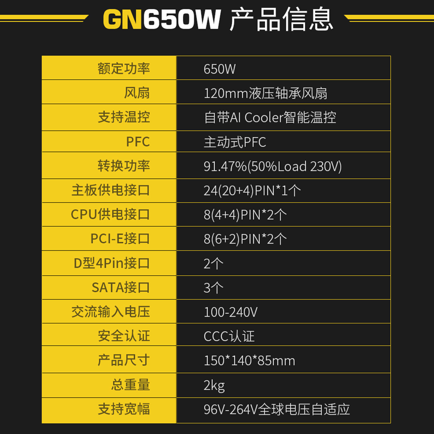 鑫谷GN650W金牌电脑电源台式机额定750W游戏主机电源850W
