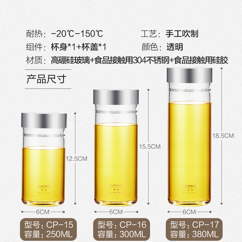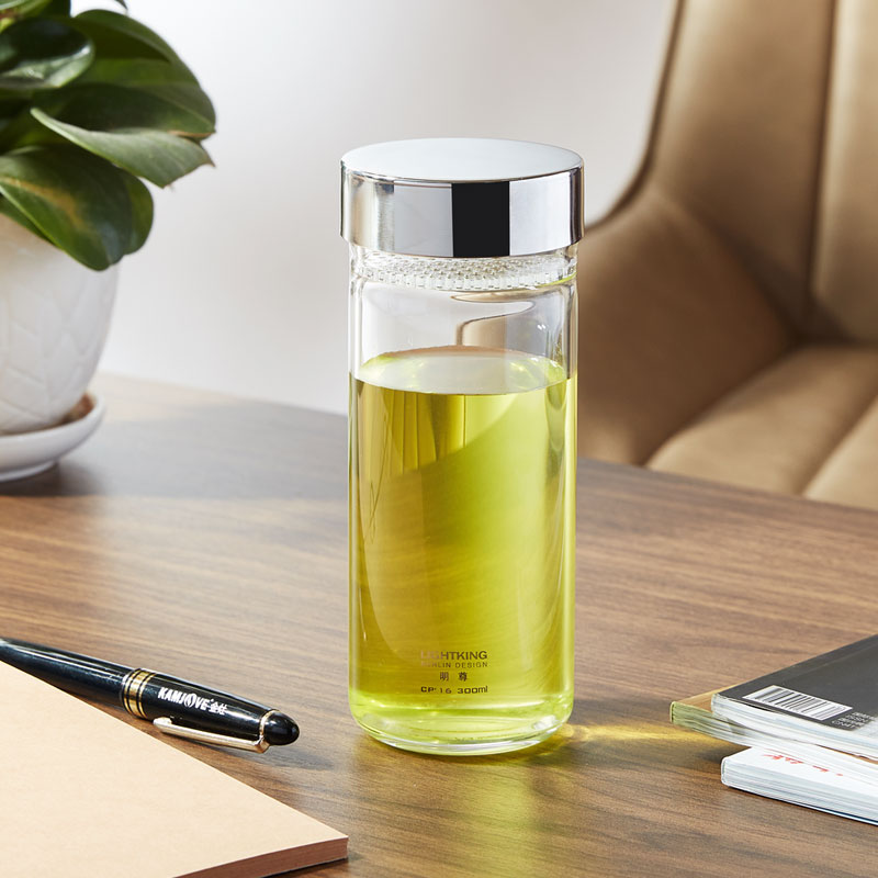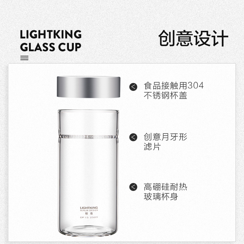 LIGHTKING玻璃水杯带盖茶水分离办公室泡茶专用耐热茶杯过滤家用