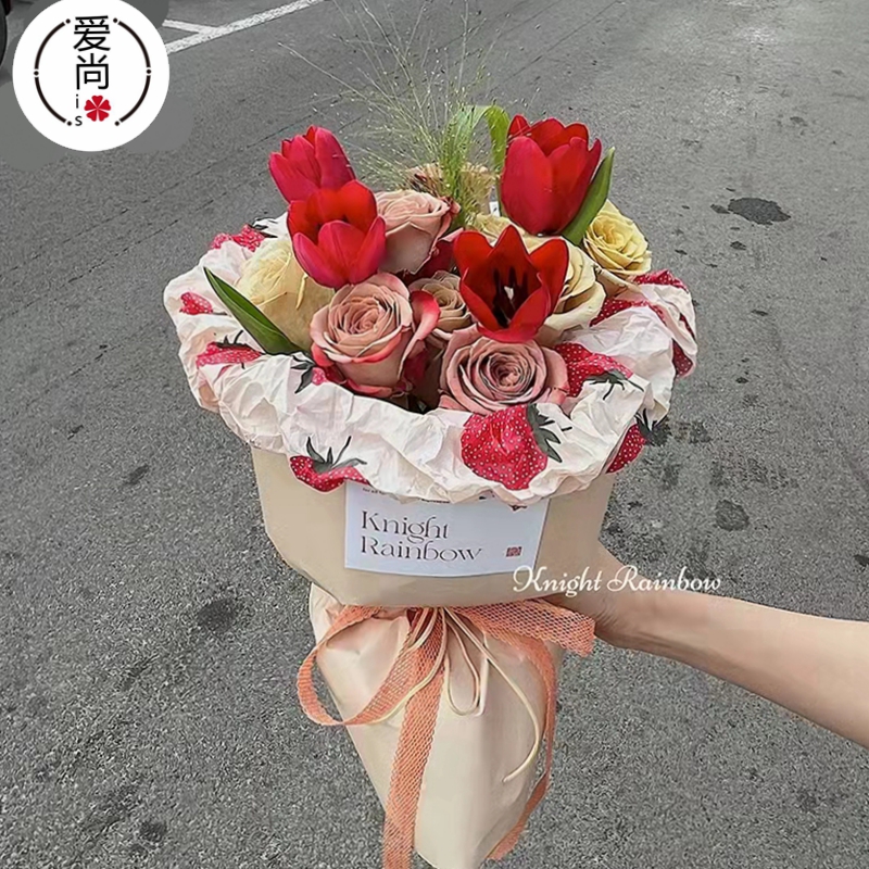 爱尚新款母亲节鲜花礼物包装花艺皱皱内衬包花雪梨纸雪花纸花店用