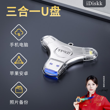 iDiskk照片备份U盘适用于苹果华为安卓手机电脑两用typec三口优盘