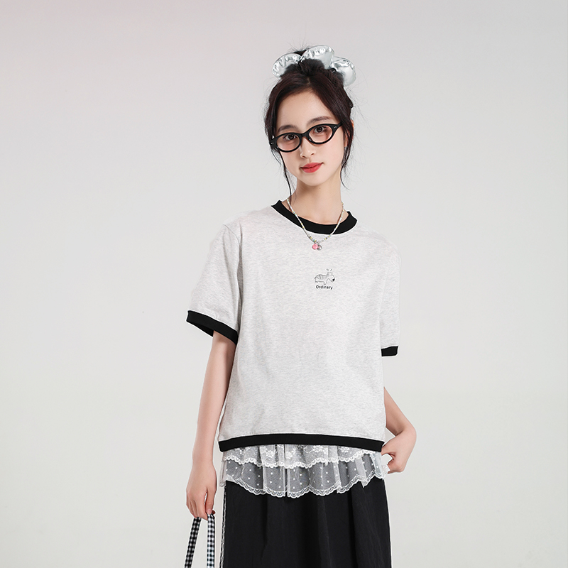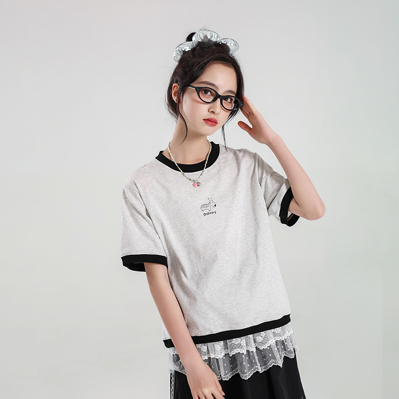 女大童短袖t恤夏季2025新款夏装上衣圆领宽松半袖体恤初中生女孩