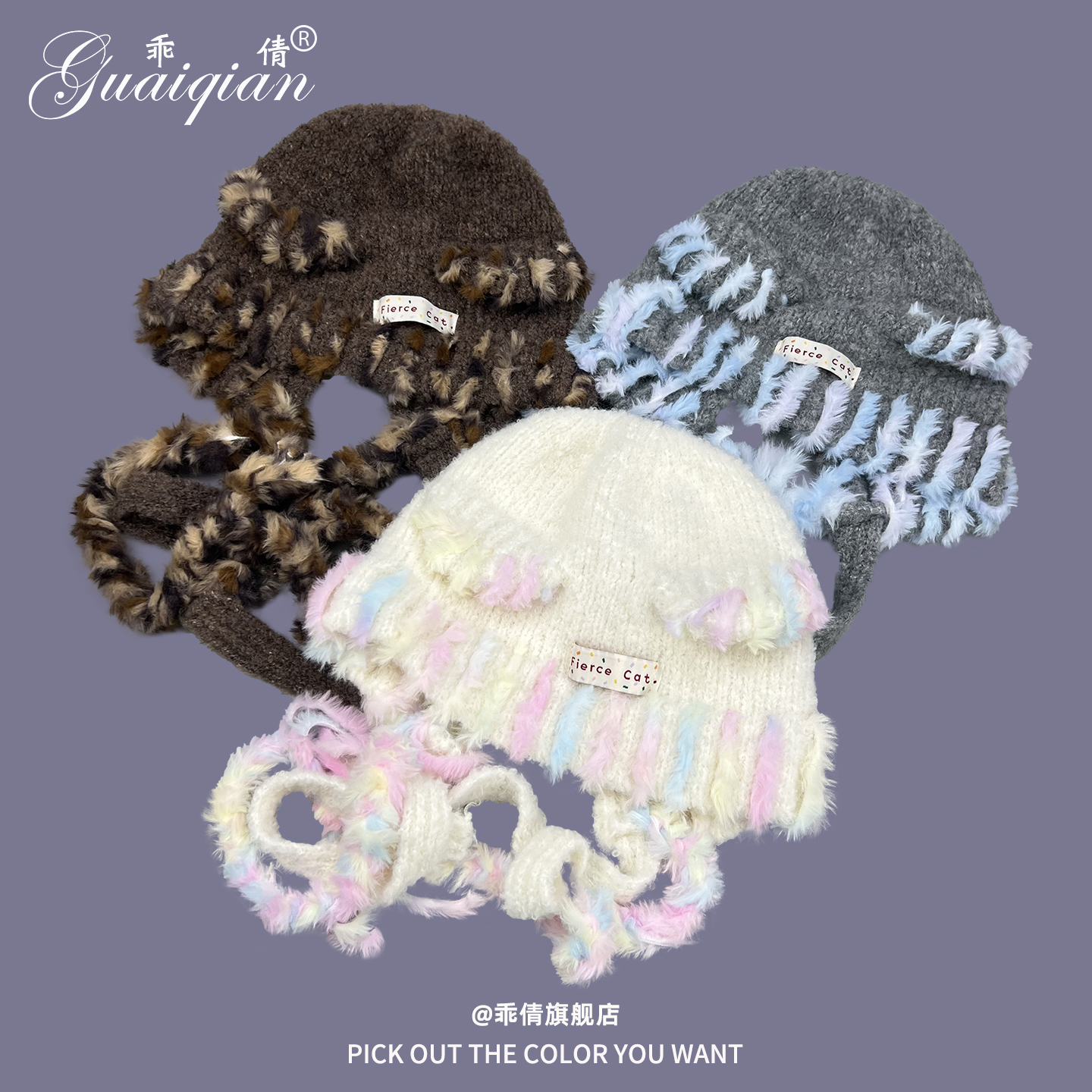 可爱猫耳朵毛线帽女冬季毛绒针织