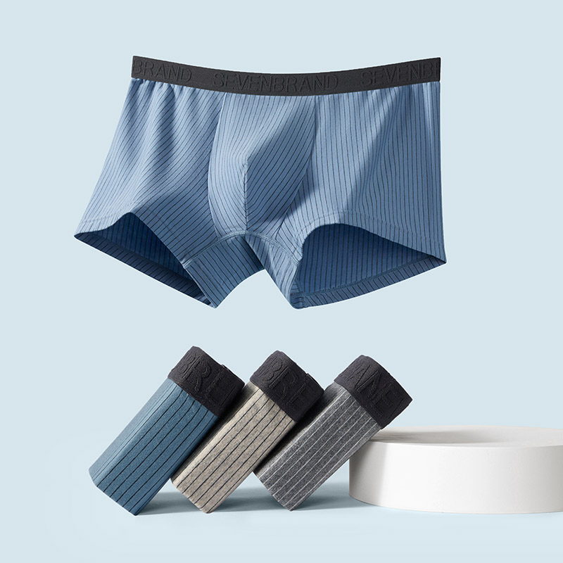 柒牌男士新疆棉平角内裤男抗菌平角短裤男生条纹四角裤三条装