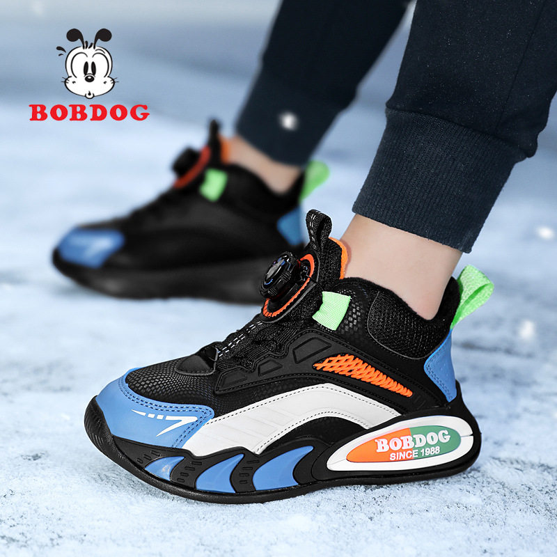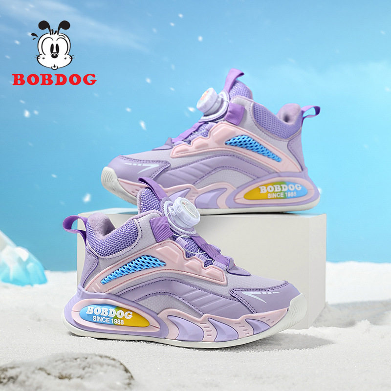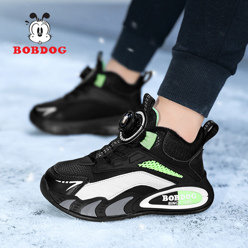 巴布豆男童棉鞋冬季加绒保暖男女童运动鞋中大童学生旋转扣跑步鞋