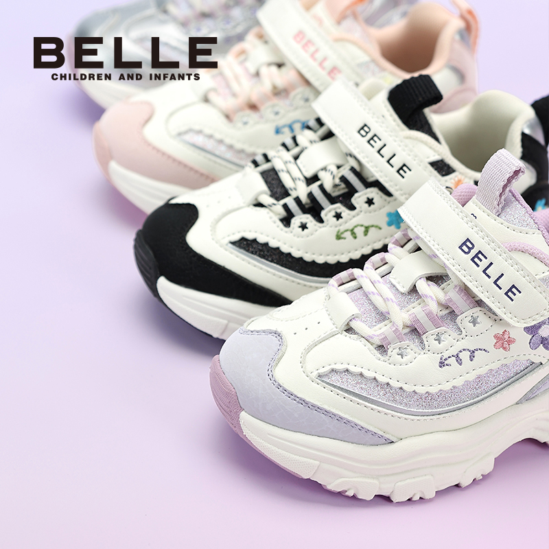 花影丨百丽童鞋儿童老爹鞋2025新款刺绣大童运动鞋女童宝宝小女孩