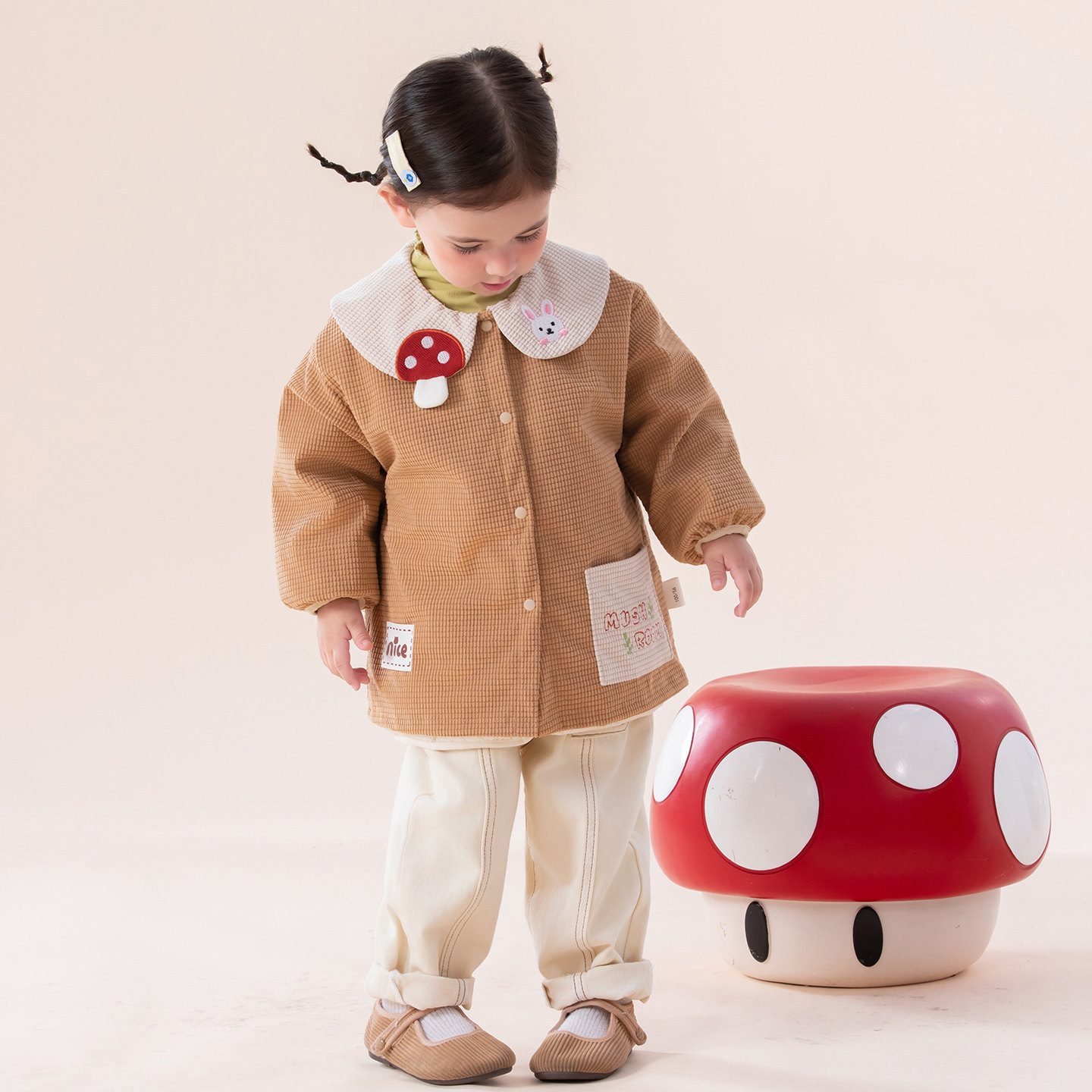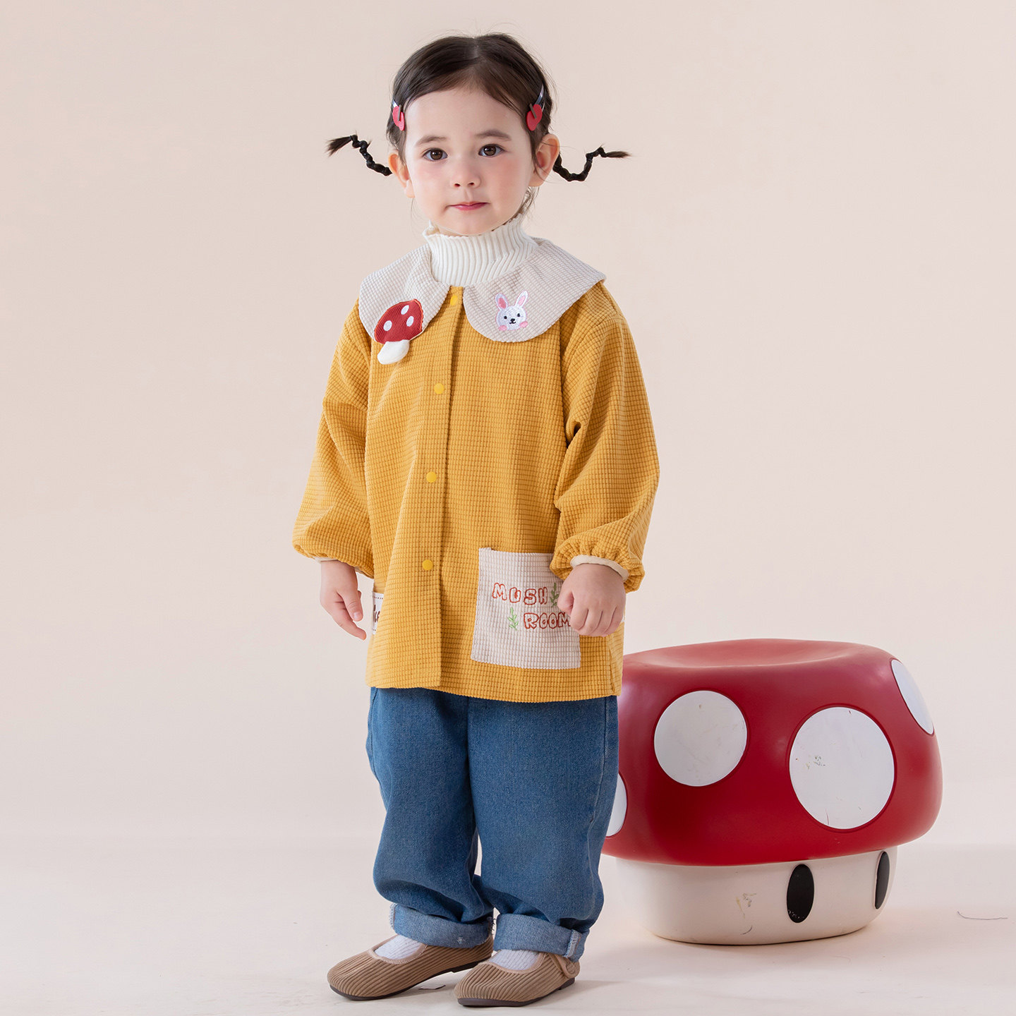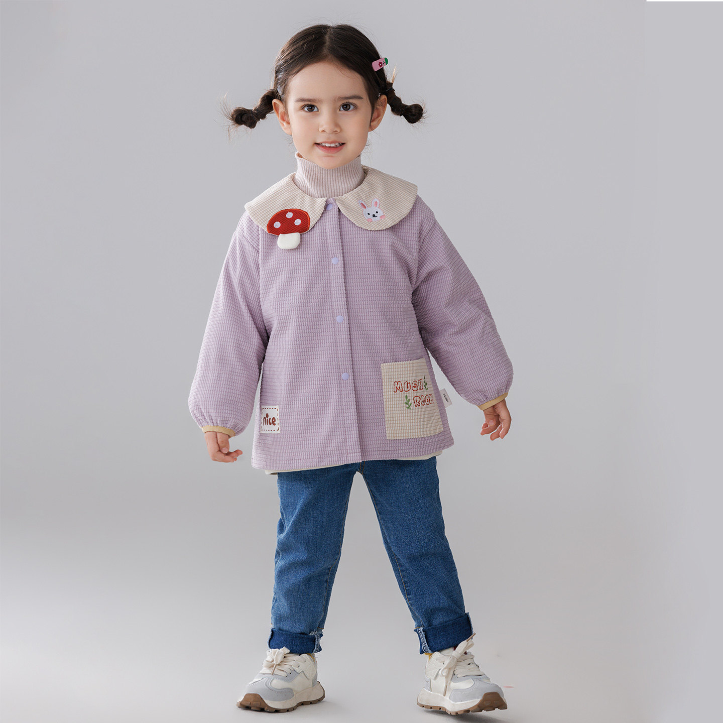 女孩可爱罩衣长袖羽绒服防脏护衣