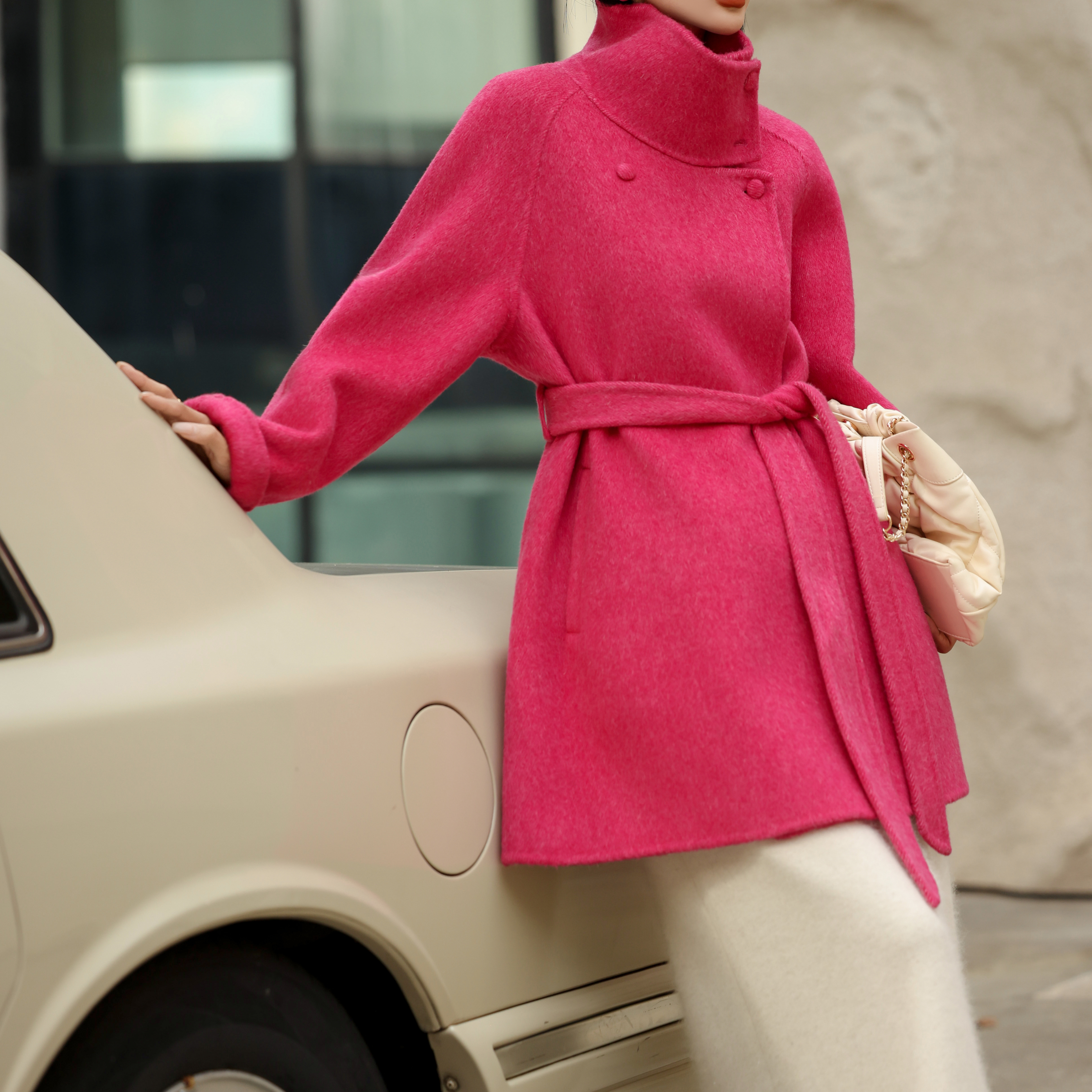 冬季新款法式复古风绿色双面羊绒大衣女中长小众加厚大牌外套
