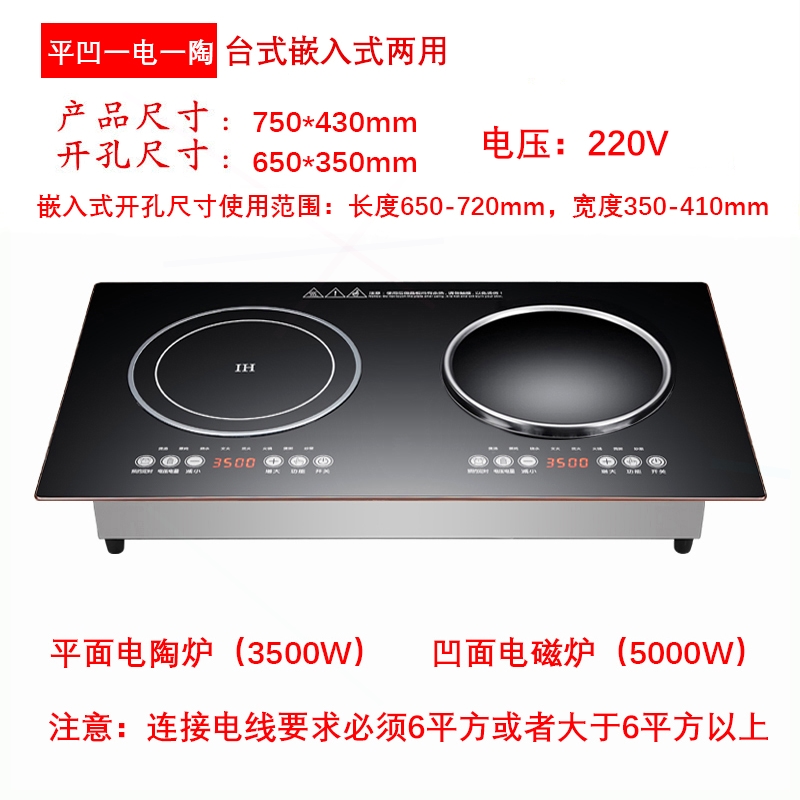 式台式大功率5000W大火力凹面双头电陶炉商用家用电磁炉双灶嵌入