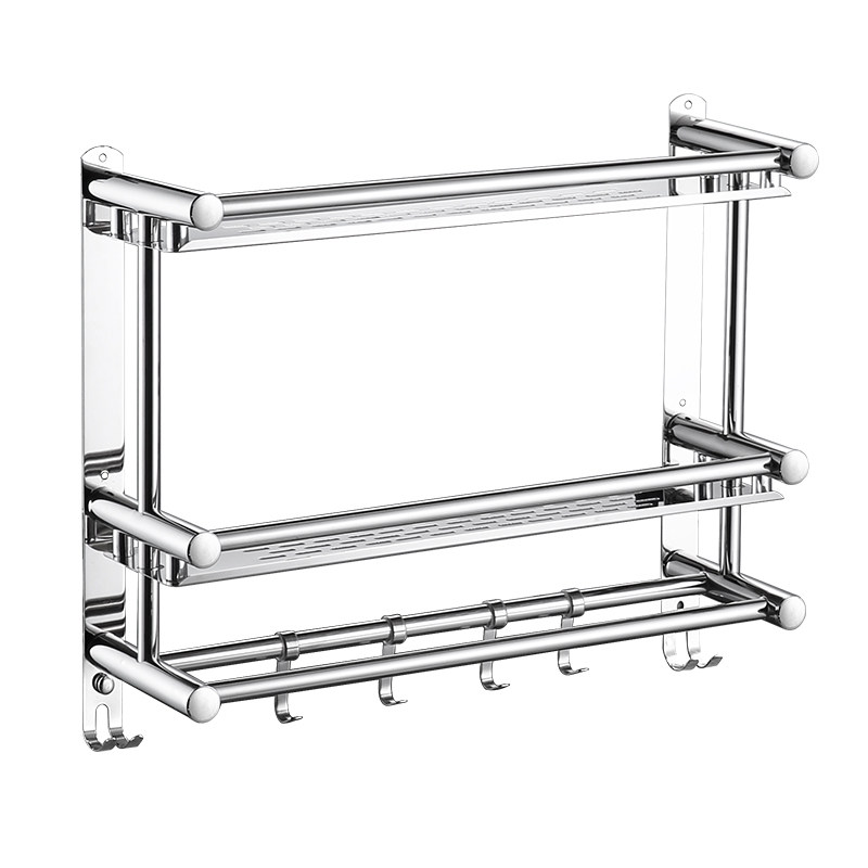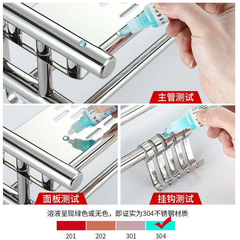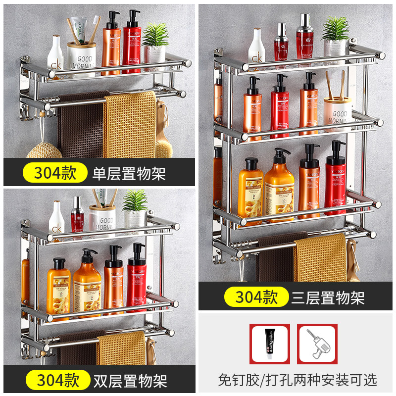 卫生间置物架304不锈钢浴室洗澡间厕所淋浴房壁挂毛巾架3层免打孔