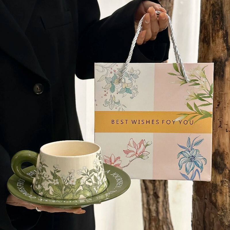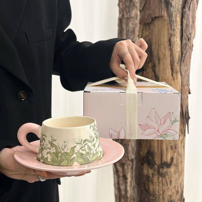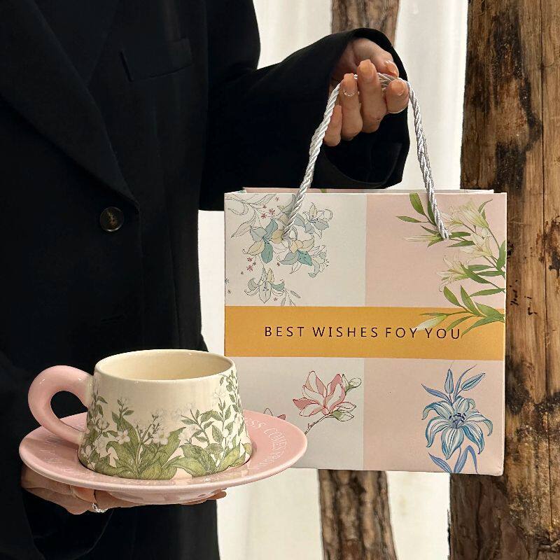铃兰花咖啡杯碟套装中古风油画下午茶拿铁牛奶杯女生陶瓷杯伴手礼