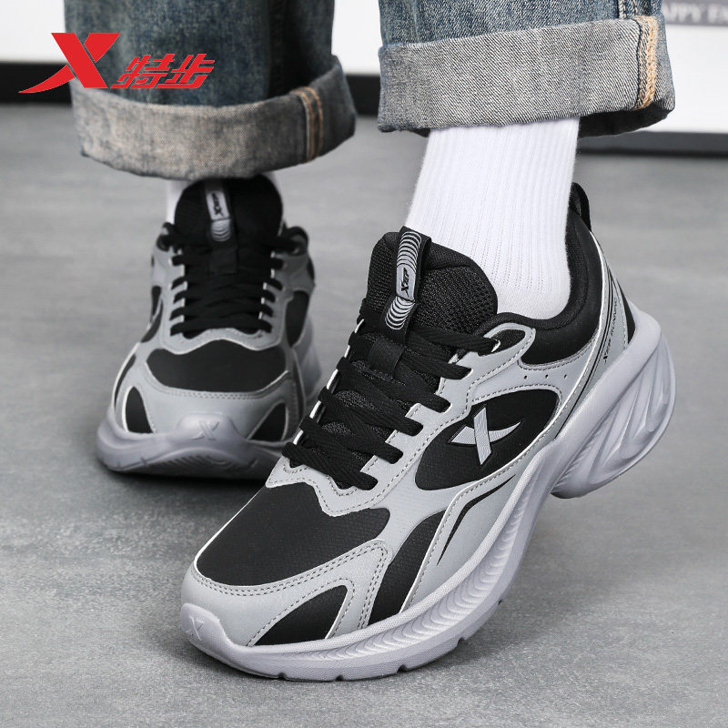 特步男鞋夏季2025新款跑步鞋轻便减震防水皮面休闲鞋子男款运动鞋